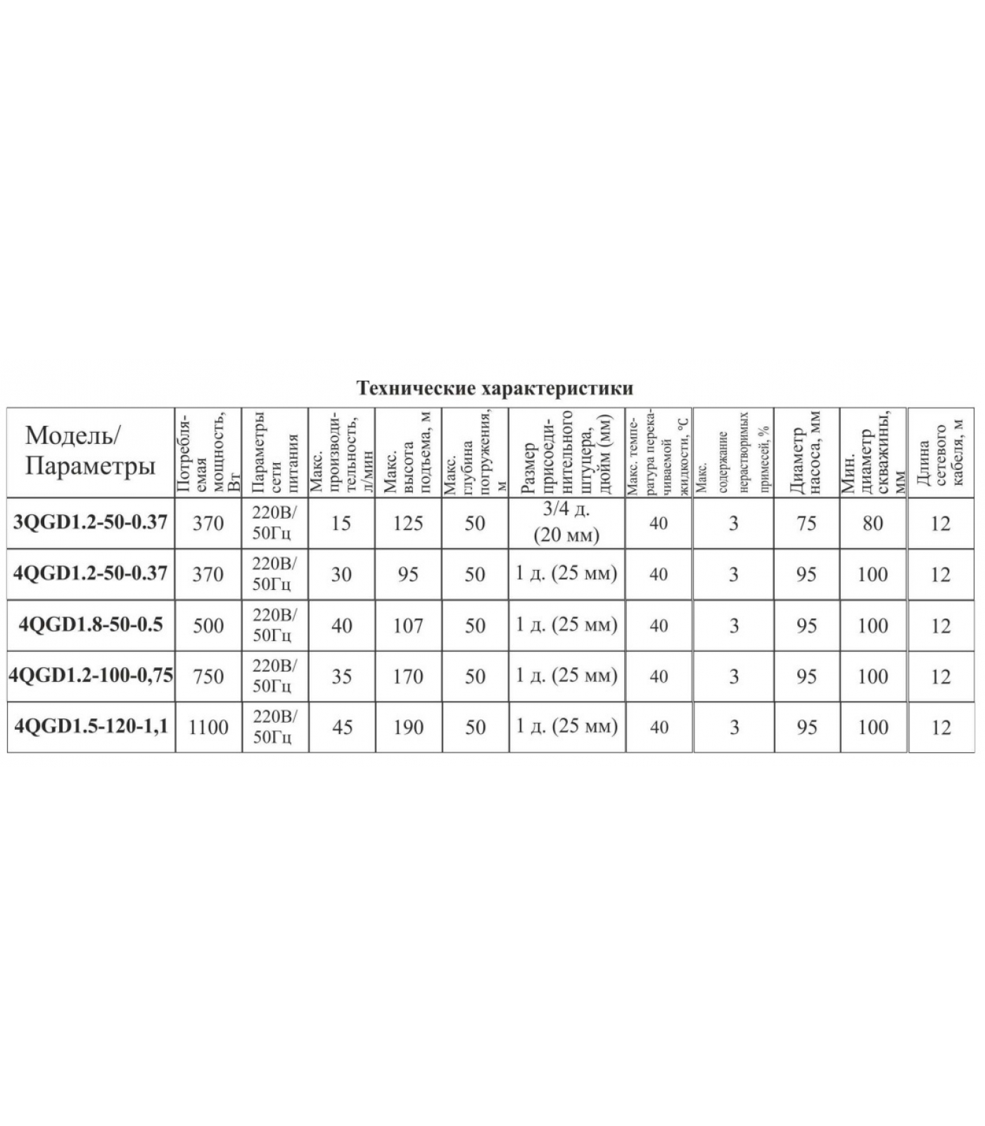 Максимальная глубина погружения насоса 50 м