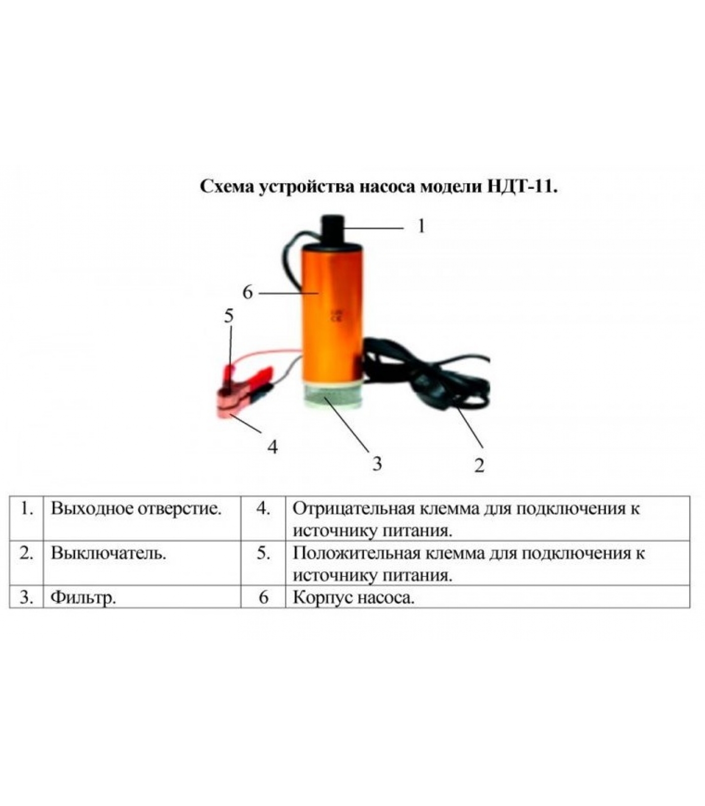 Насос погружной для ДТ "Vodotok" НДТ-11, (12В, 60 Вт, 30л/мин, Н-3м, вып.отв. 3/4")