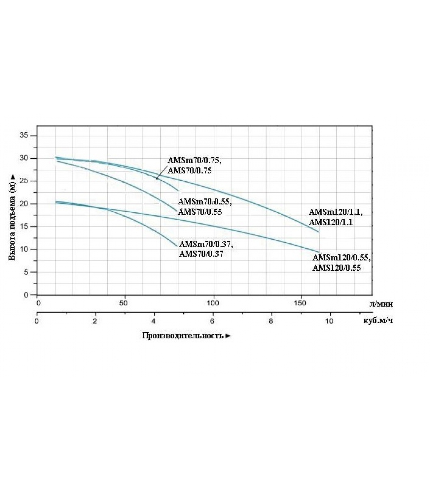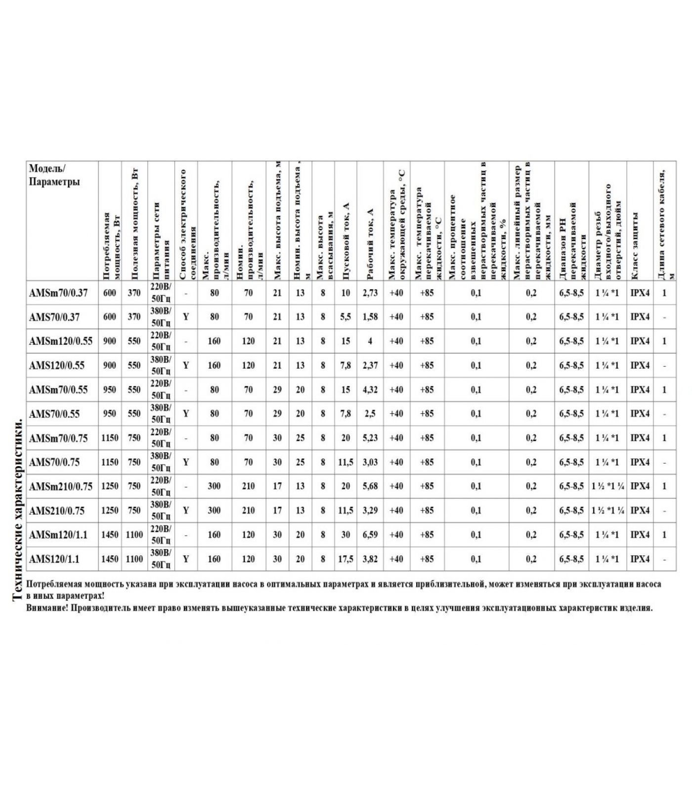 Насос серии AMSm имеет вал, рабочую камеру и крыльчатку из нержавеющей стали AISI304.