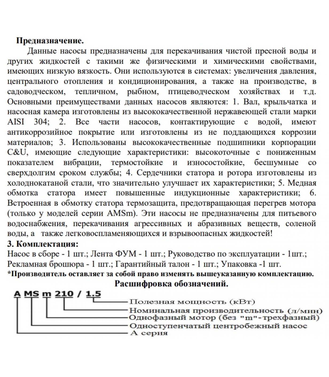 Насос применяется в бытовом и производственном водоснабжении, для садового и тепличного полива, на рыбных фермах и птицеводческих хозяйствах и т.д. Предназначен для перекачивания воды и других химически нейтральных жидкостей с низкой вязкостью, с показателем РН 6,5-8,5.