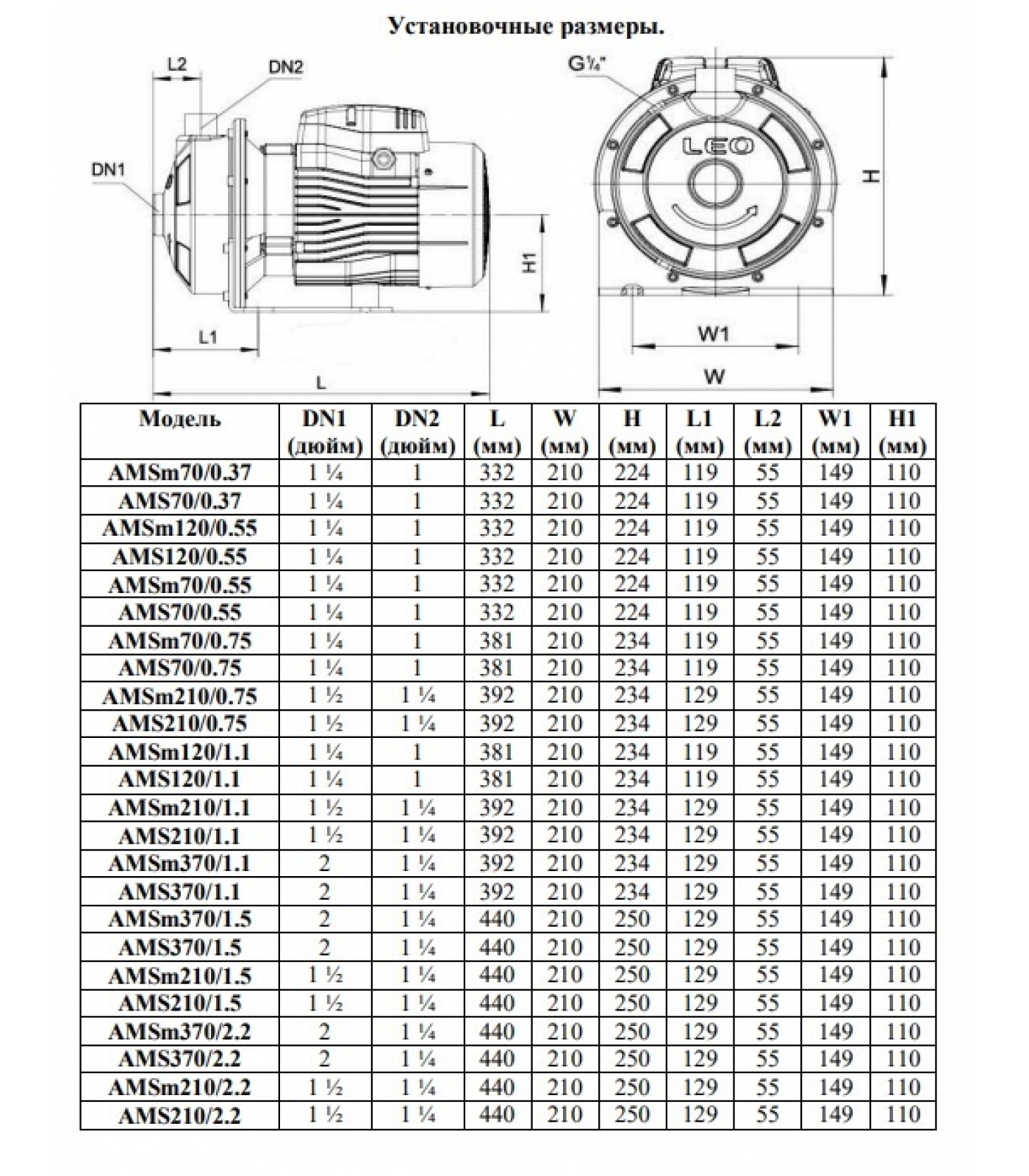 Насос AMSm70/0.55 поверхностный центробежный LEO