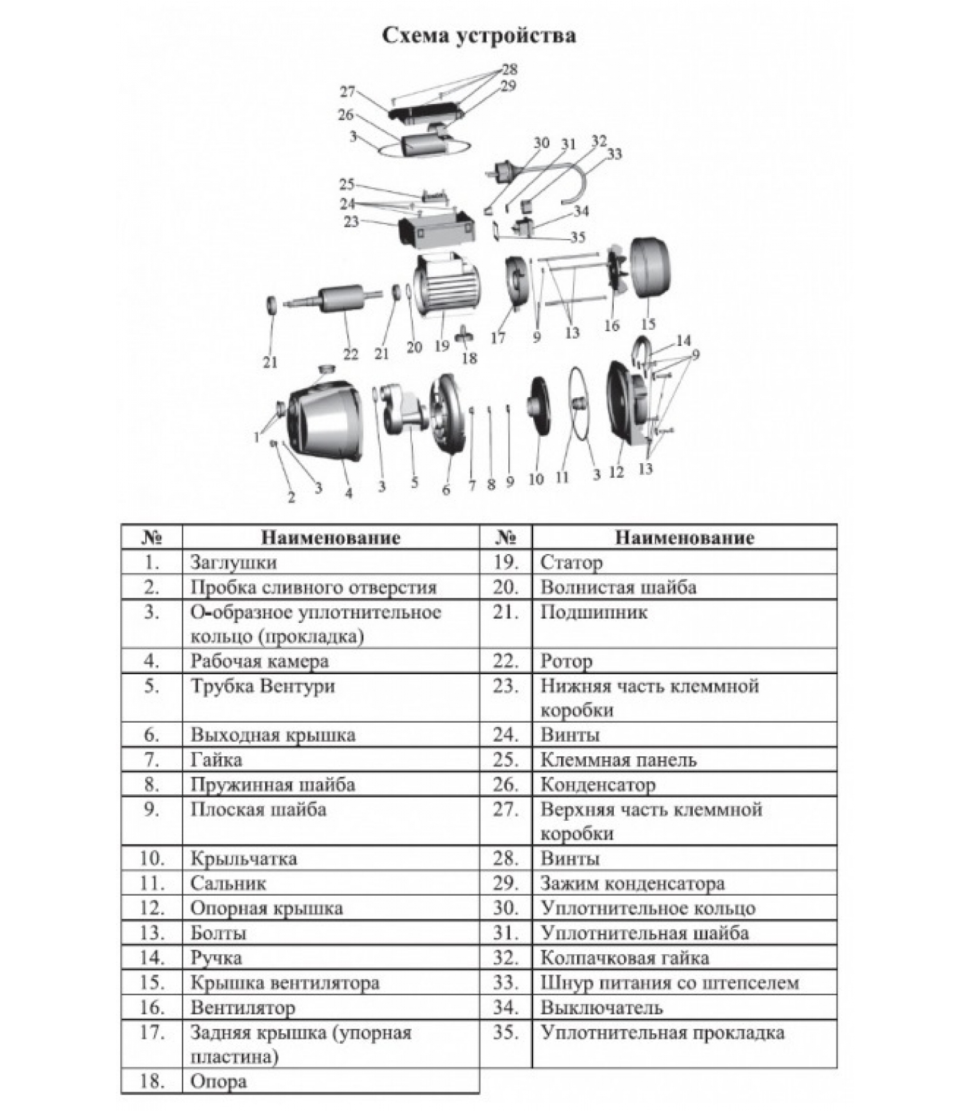 Данный насос являются самовсасывающим и не требует предварительного заполнения рабочей камеры водой, за исключением первого пуска.