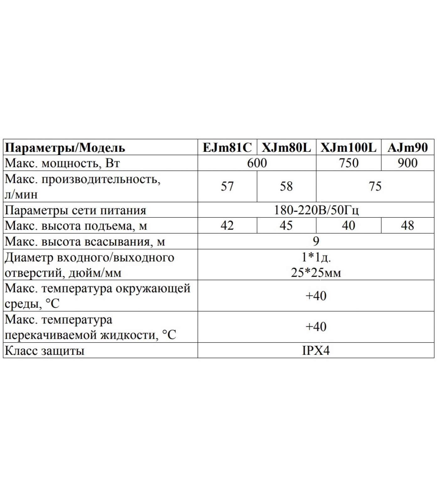 Насос является самовсасывающим и не требует предварительного заполнения рабочей камеры водой, за исключением первого пуска.