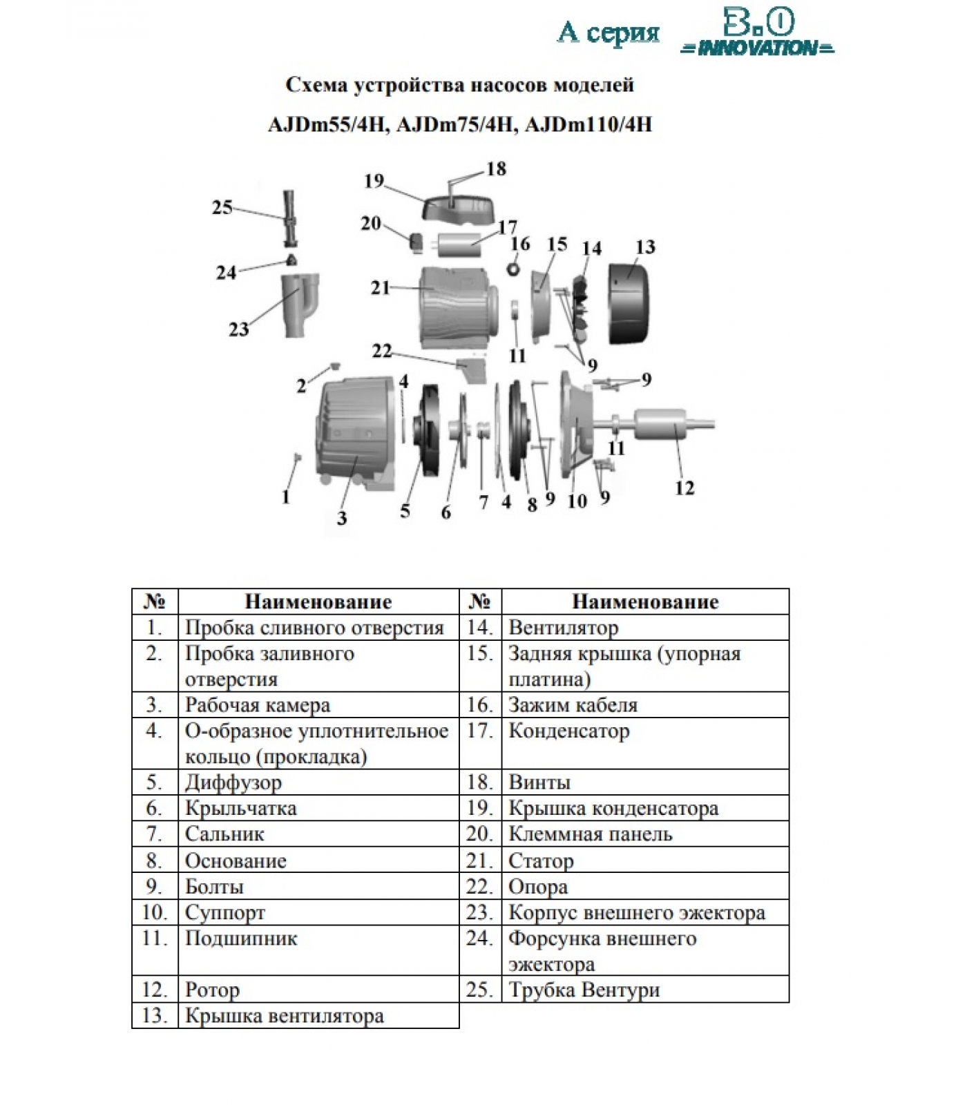 Насос является самовсасывающим и не требует предварительного заполнения рабочей камеры водой, за исключением первого пуска.
