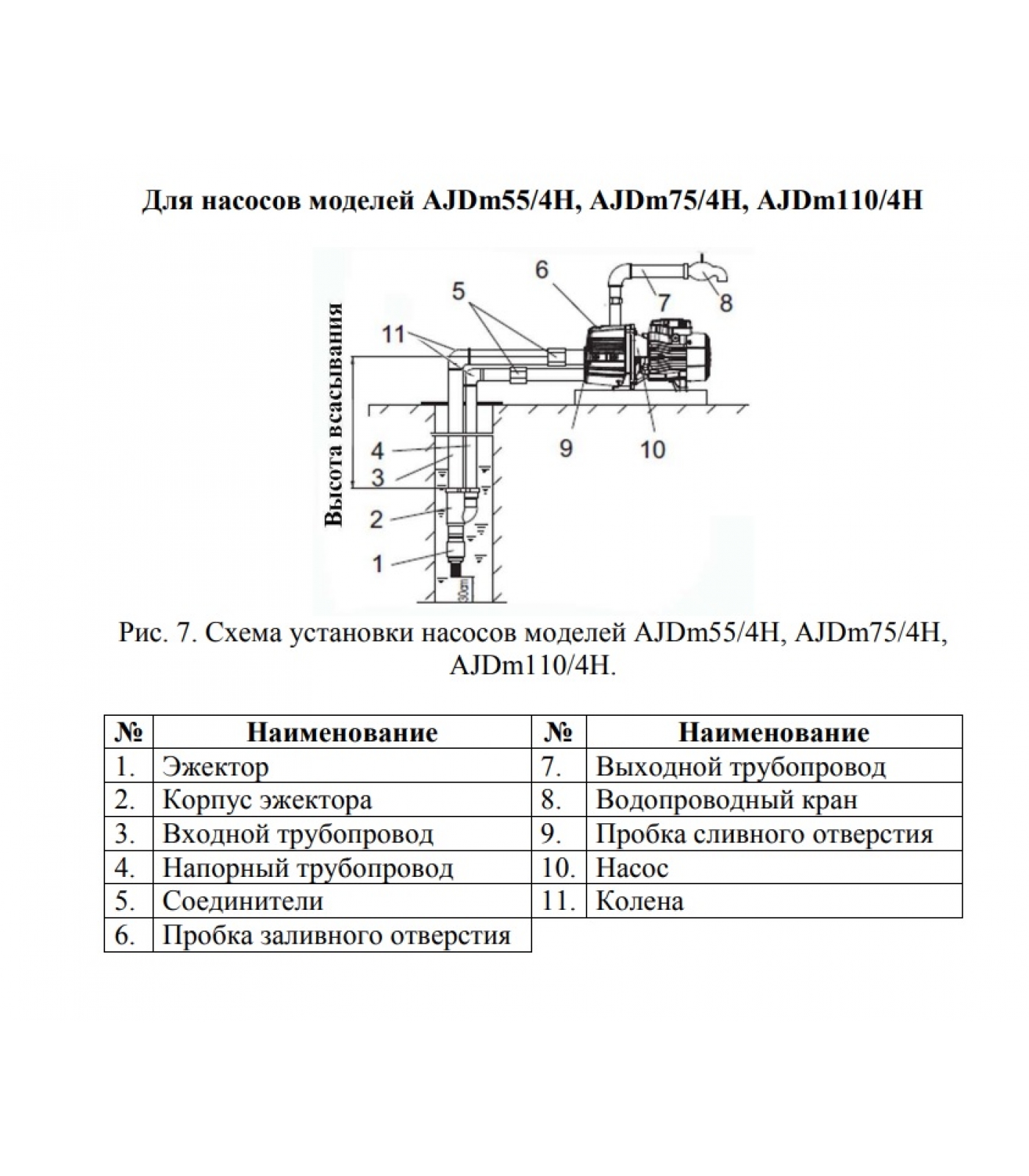 Применение внешнего эжектора позволяет увеличить максимальную высоту всасывания до 40 м.