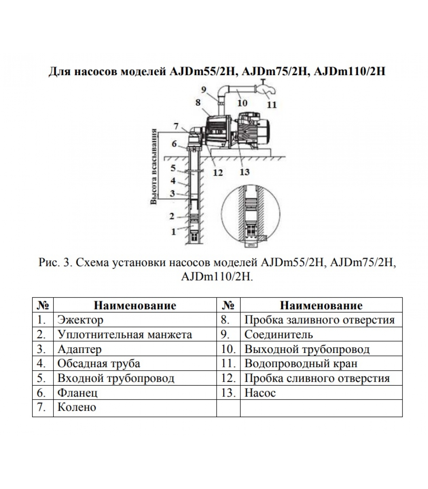 Применение внешнего эжектора позволяет увеличить максимальную высоту всасывания до 40 м.