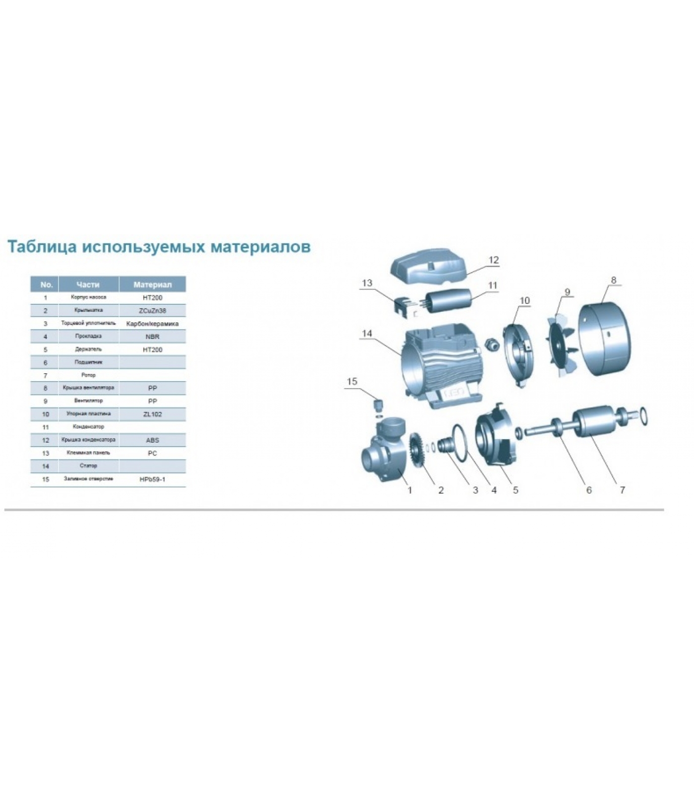 Чугунная рабочая камера и специальная обработка антикоррозийным покрытием всех частей насоса, контактирующих с водой.