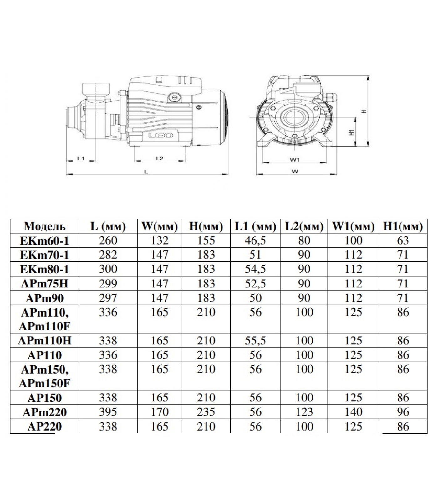 Насос поверхн. вихревой "LEO" EKm 70-1, (600Вт, 50л/мин, 60м)