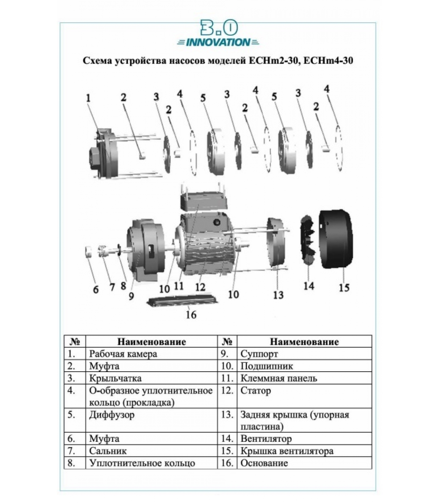В насосах серии ECHm рабочие камеры, крыльчатки и вал изготовлены из нерж. стали марки AISI 304. Каждая крыльчатка установленна в отдельной секции рабочей камеры.