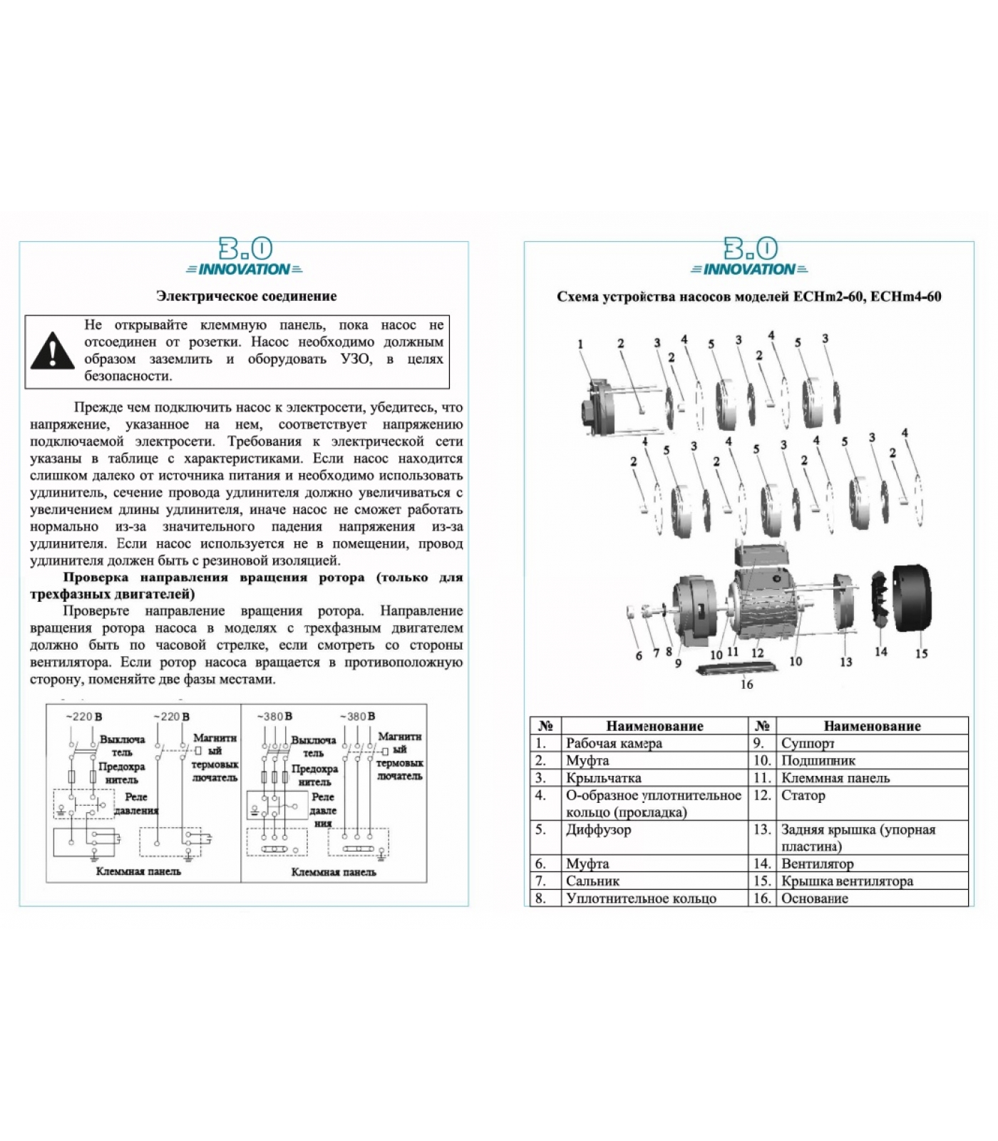 В насосах серии ECHm рабочие камеры, крыльчатки и вал изготовлены из нерж. стали марки AISI 304. Каждая крыльчатка установленна в отдельной секции рабочей камеры.