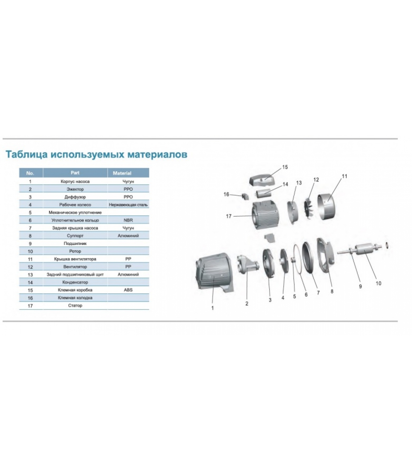 1) Все части, контактирующие с водой, имеют антикоррозионное покрытие или изготовлены из не поддающихся коррозии материалов;