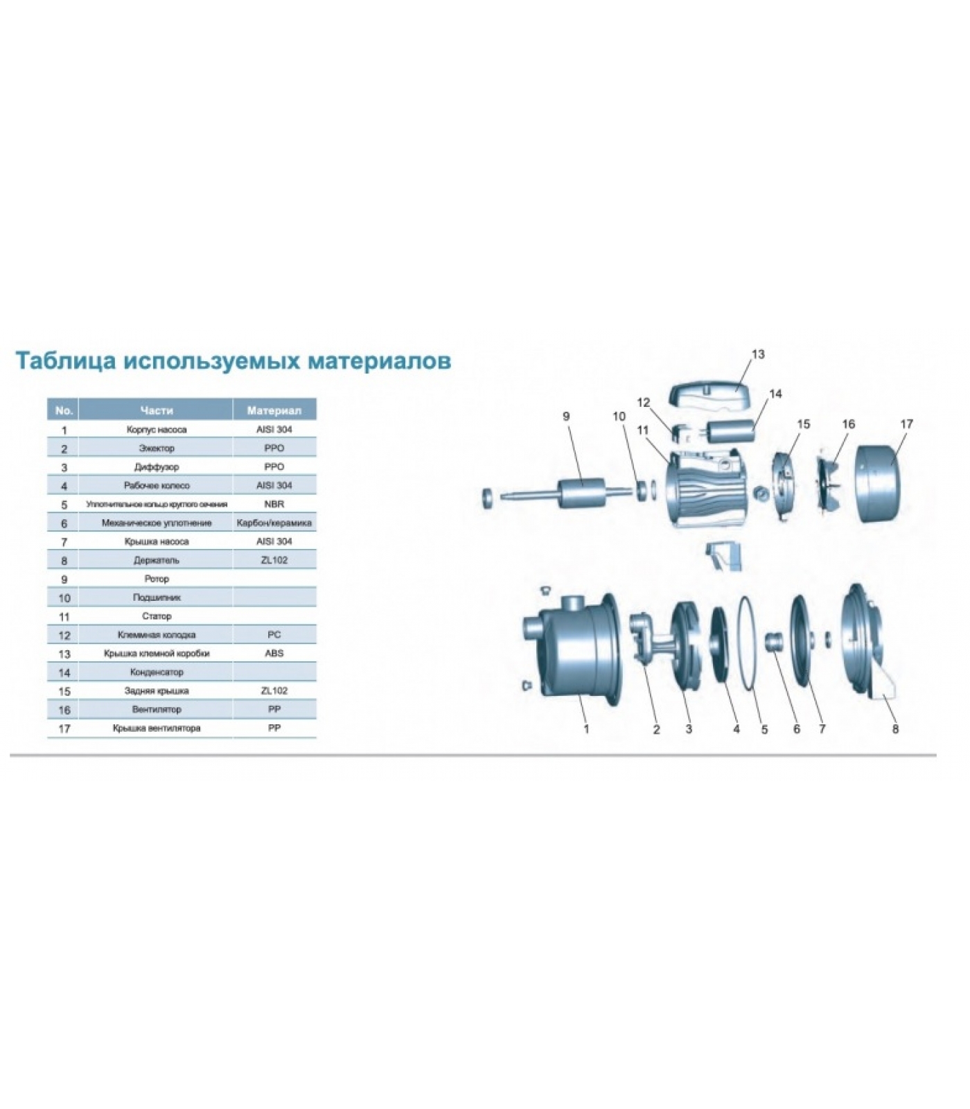 1) Все части, контактирующие с водой, имеют антикоррозионное покрытие или изготовлены из не поддающихся коррозии материалов;