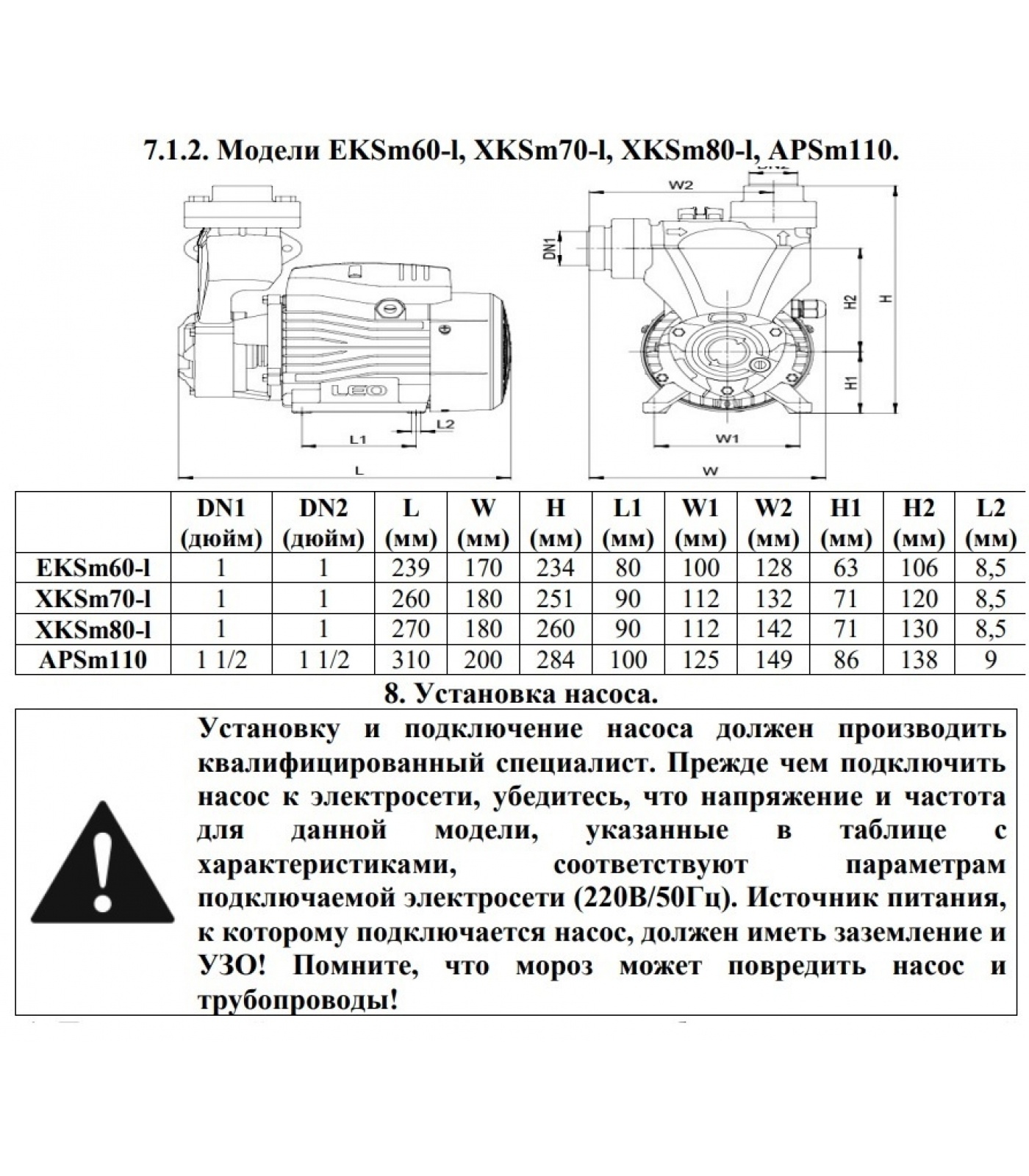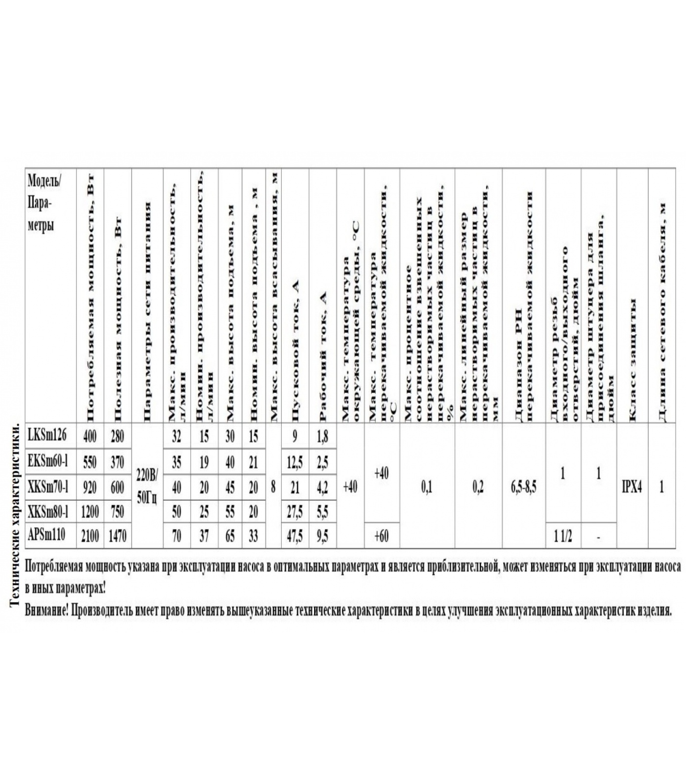 Данные насосы не предназначены для питьевого водоснабжения, перекачивания агрессивных и абразивных веществ, соленой воды, а также легковоспламеняющихся и взрывоопасных жидкостей!