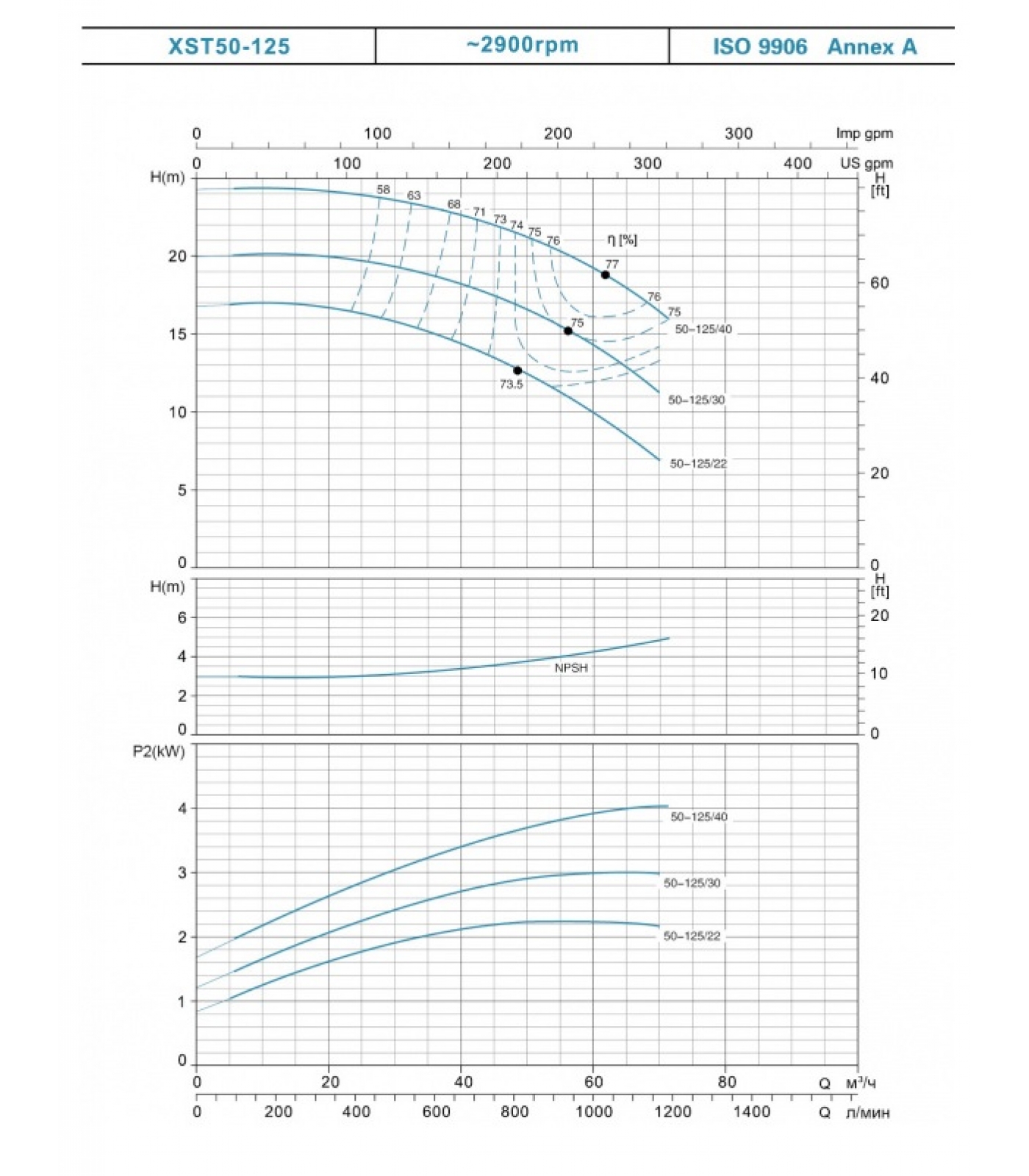 Насосы серии XST имеют трехфазный мотор (380В/50Гц).