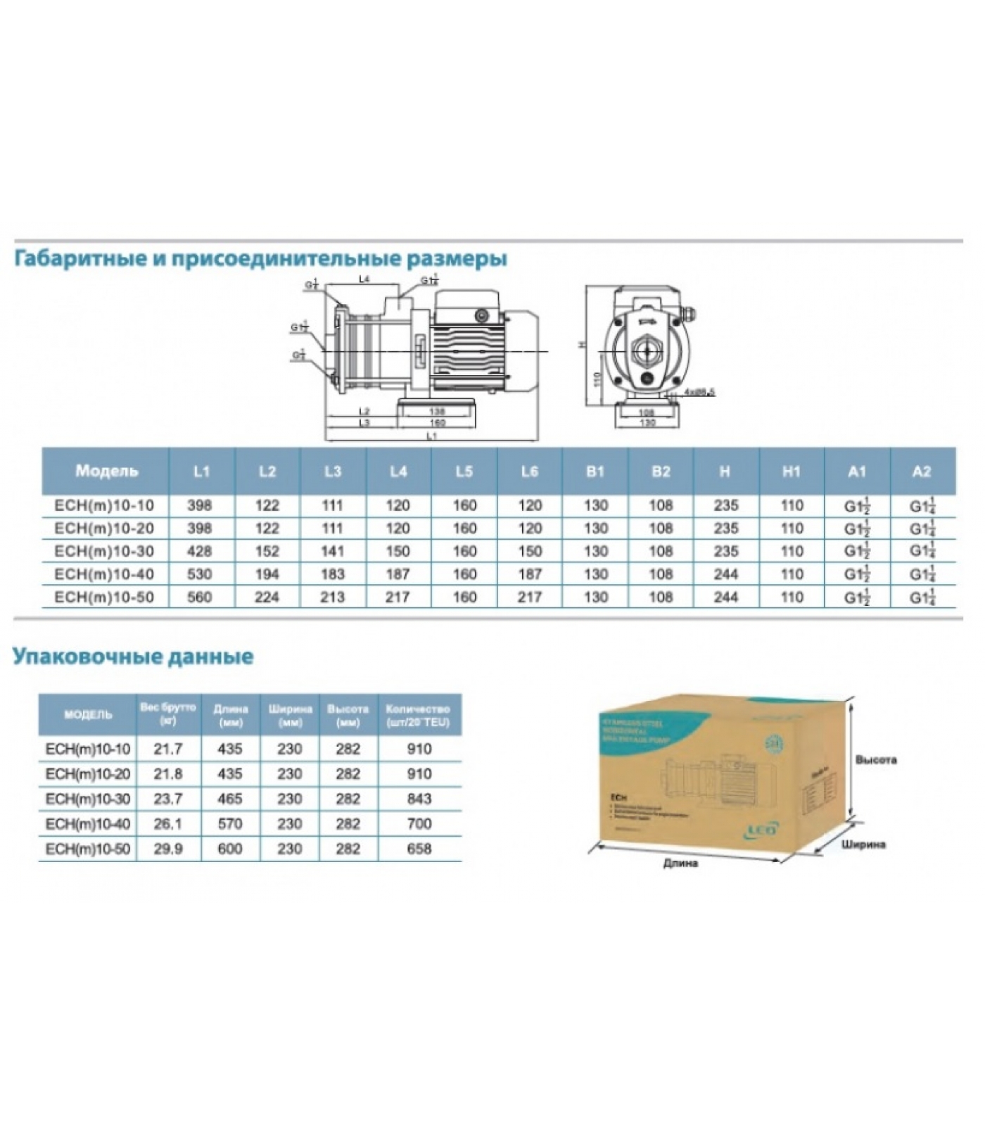 Насос 10-50 ECHm поверхностный многоступенчатый LEO
