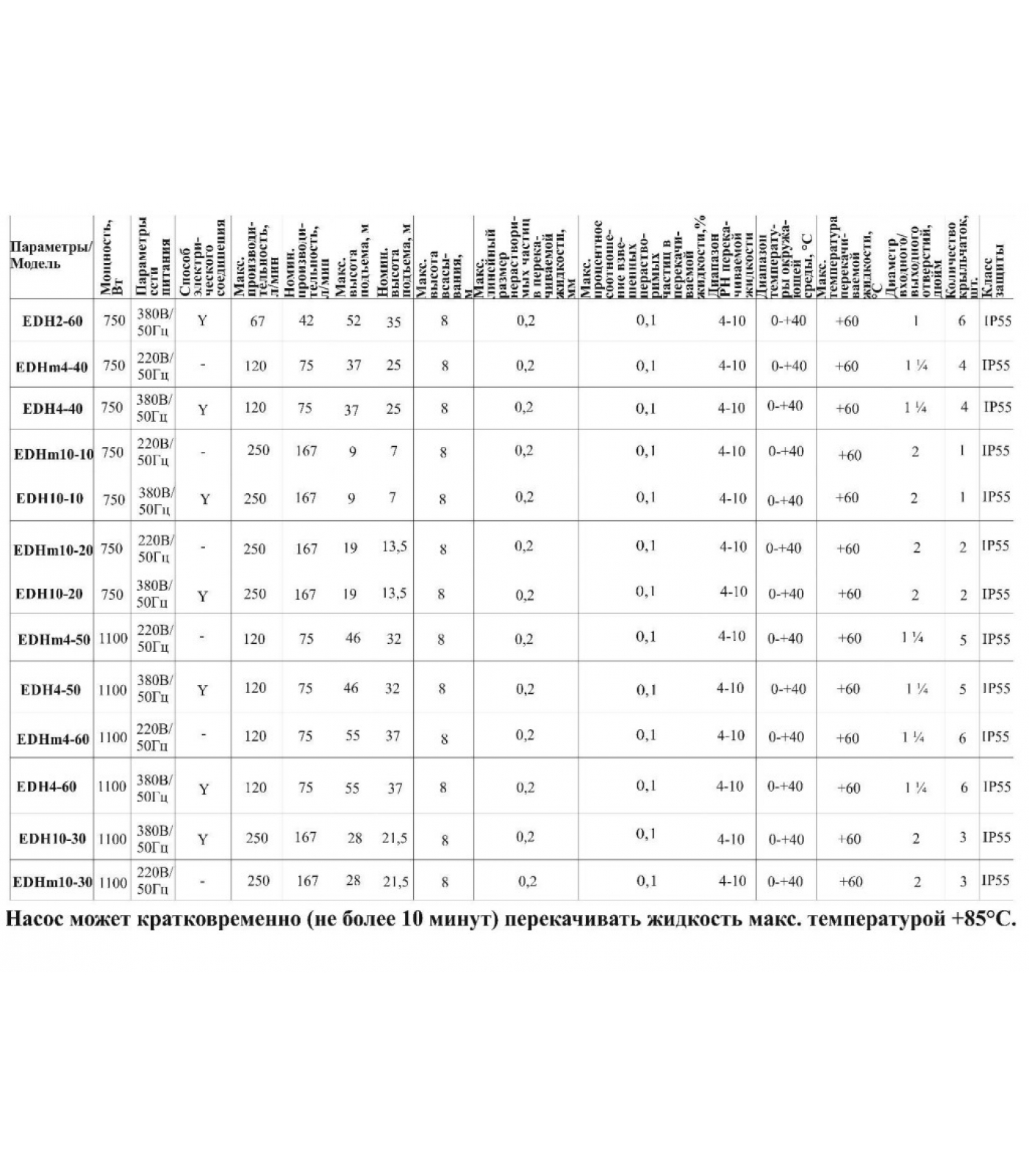 | Максимальная температура жидкости, °С | 85 |