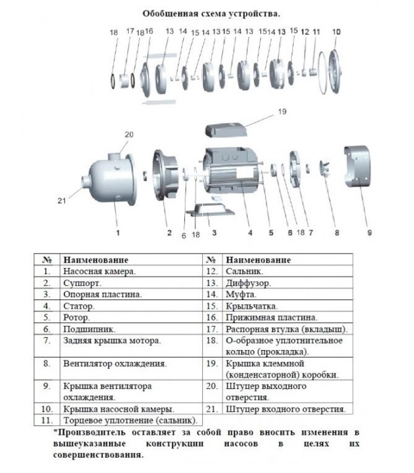 Насос в сборе – 1 шт.;