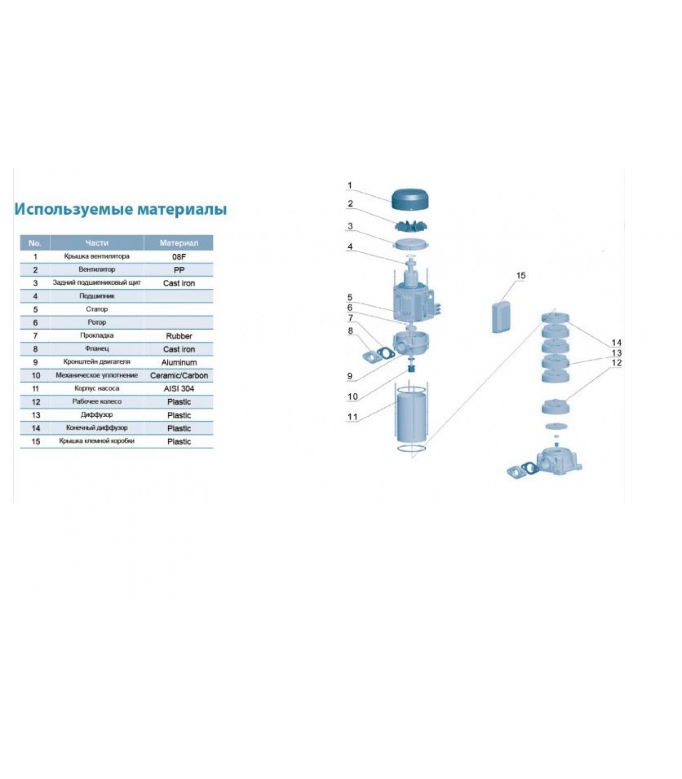 1. Все части насосов, контактирующие с жидкостью, имеют антикоррозионное покрытие или изготовлены из не поддающихся коррозии материалов;