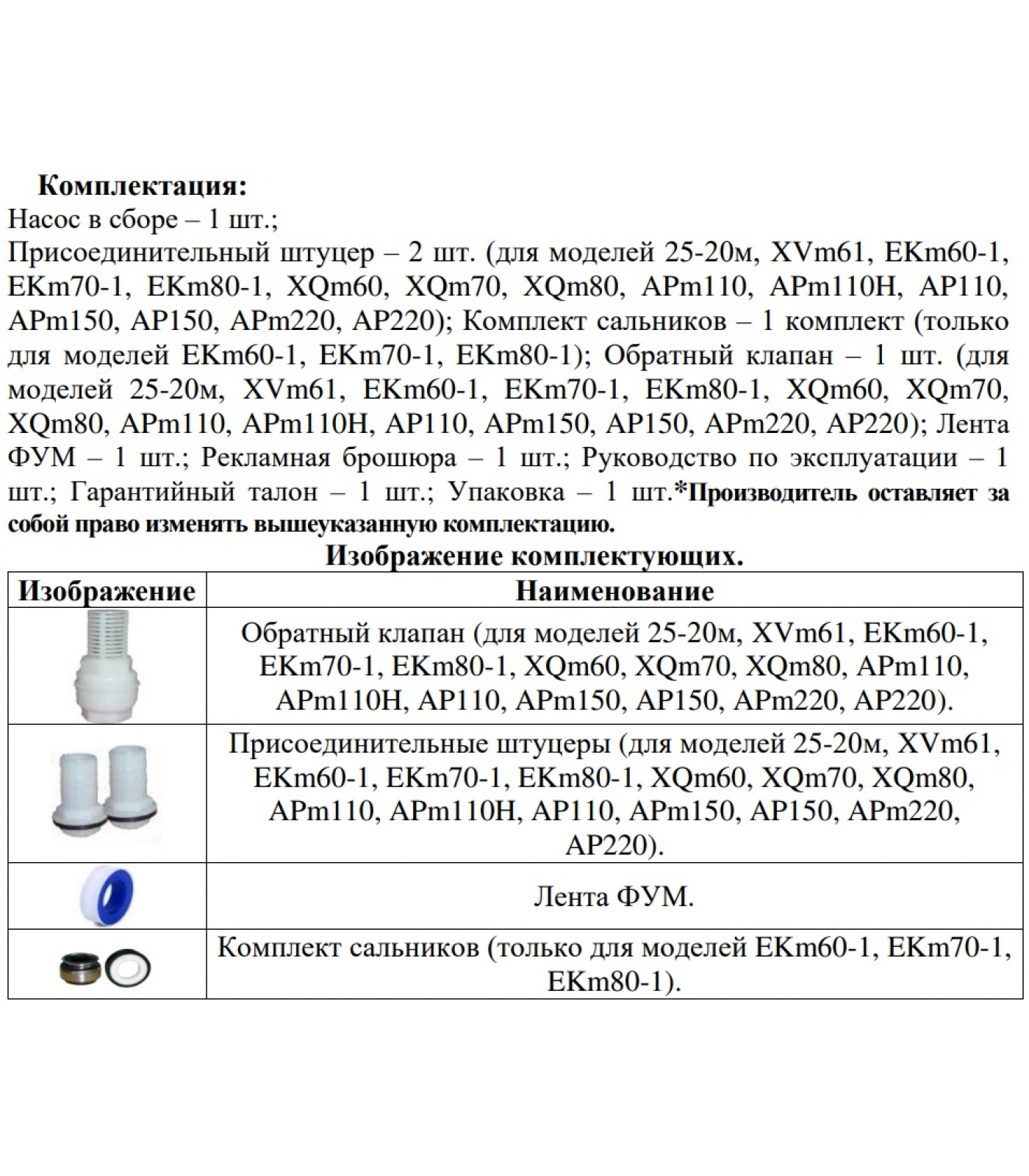 •Обратный клапан – 1 шт.;
