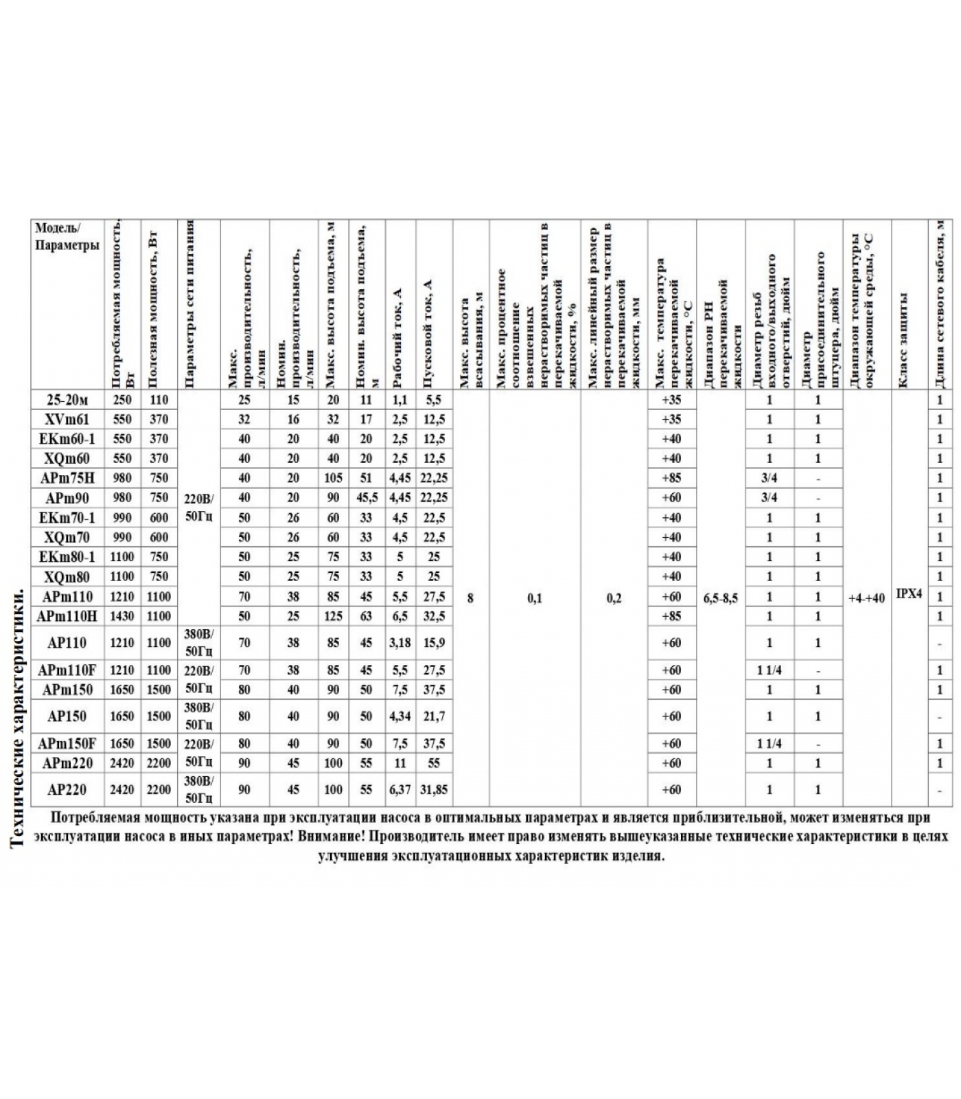 Чугунная рабочая камера и специальная обработка антикоррозийным покрытием всех частей насоса, контактирующих с водой.