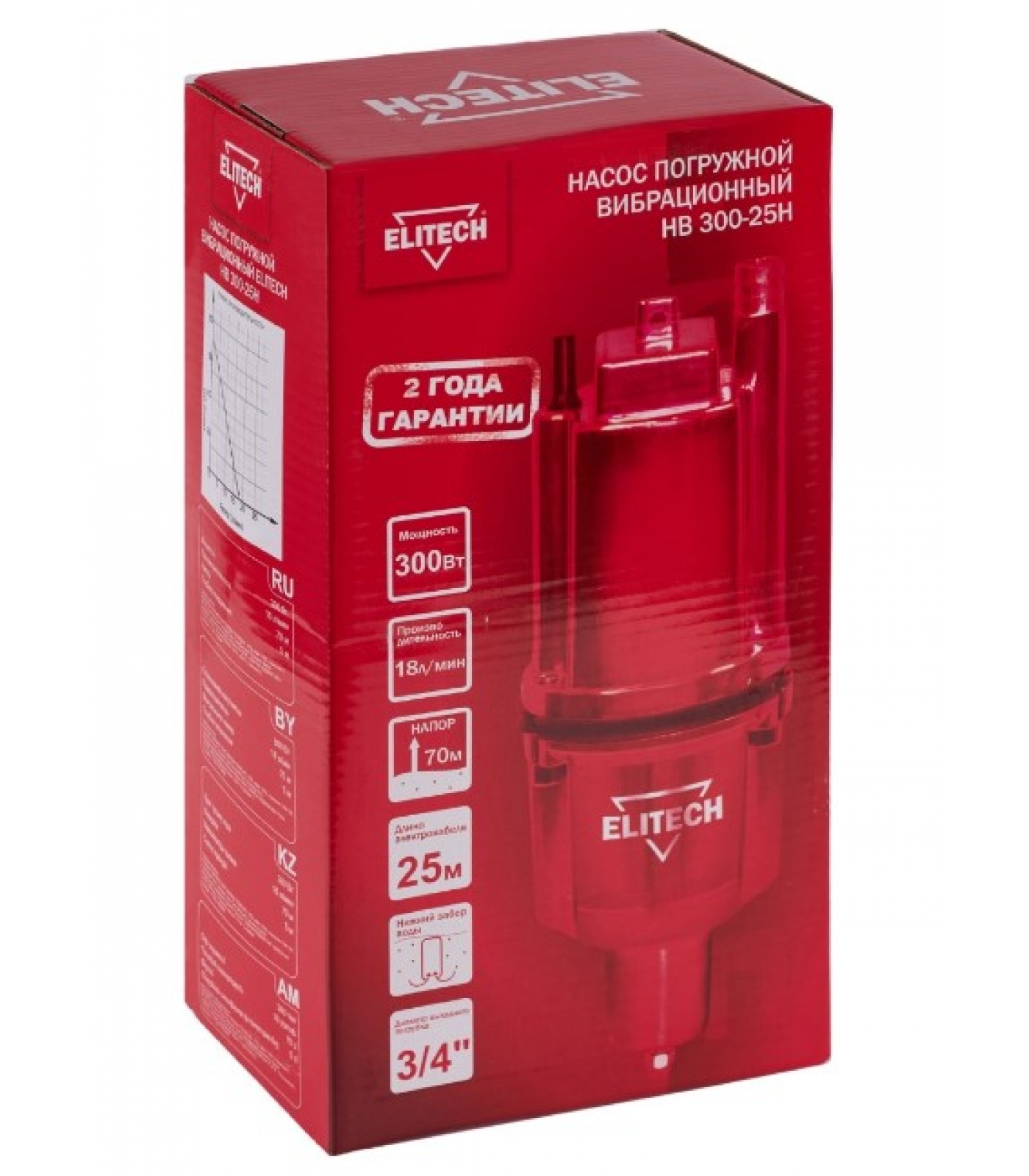 Насос НВ 300-25Н вибрационный Elitech, нижний забор, глубина до 5 м