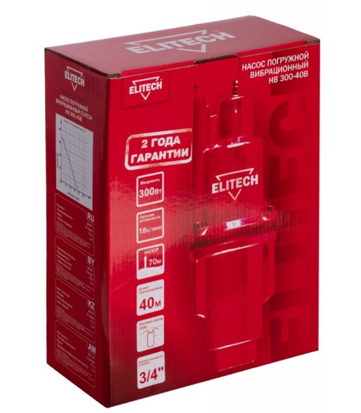 Насос НВ 300-40В вибрационный Elitech, верхний забор, глубина до 5 м