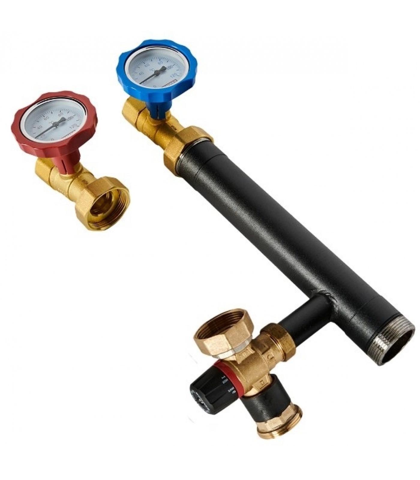 -Термостатический смесительный клапан (Kvs – 1,6 м³/ч) в линии подачи с накидной гайкой (1 1/2") для установки насоса.