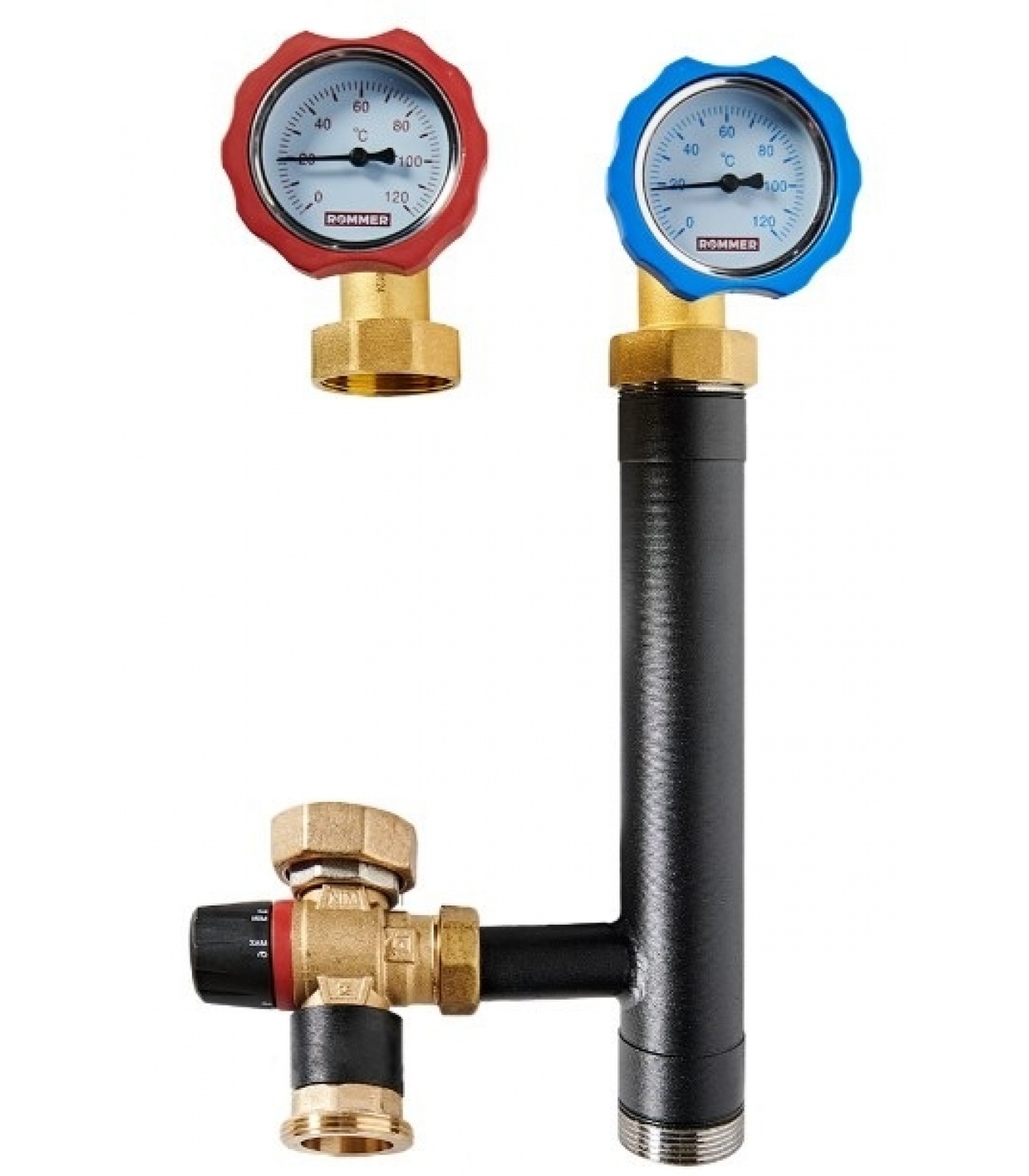 Насосная группа ROMMER RDG-0002 с термостатическим смесительным клапаном (20-40°С) 1 без насоса