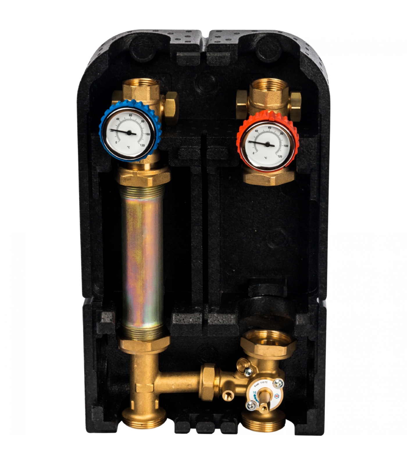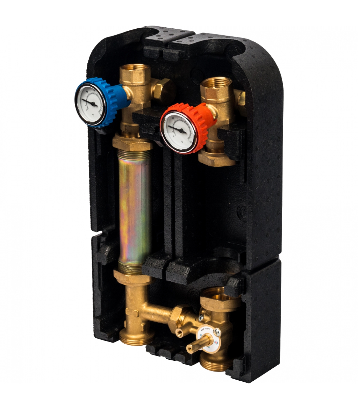 Насосная группа с трёхходовым приводным смесителем, предназначена для обеспечения гидравлического и температурного режимов в системе отопления с переменной температурой теплоносителя.