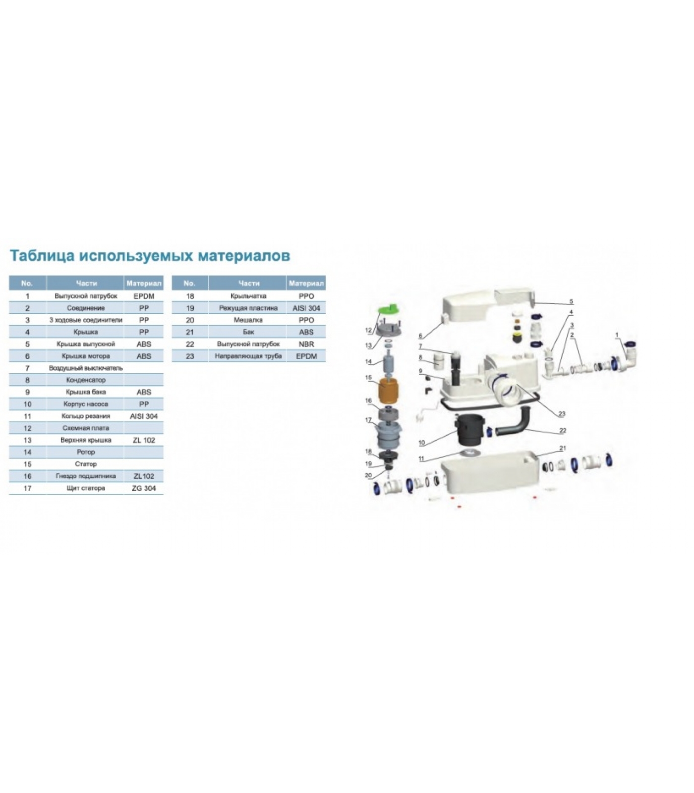 1. Все части, контактирующие с водой, имеют антикоррозионное покрытие или изготовлены из не поддающихся коррозии материалов;