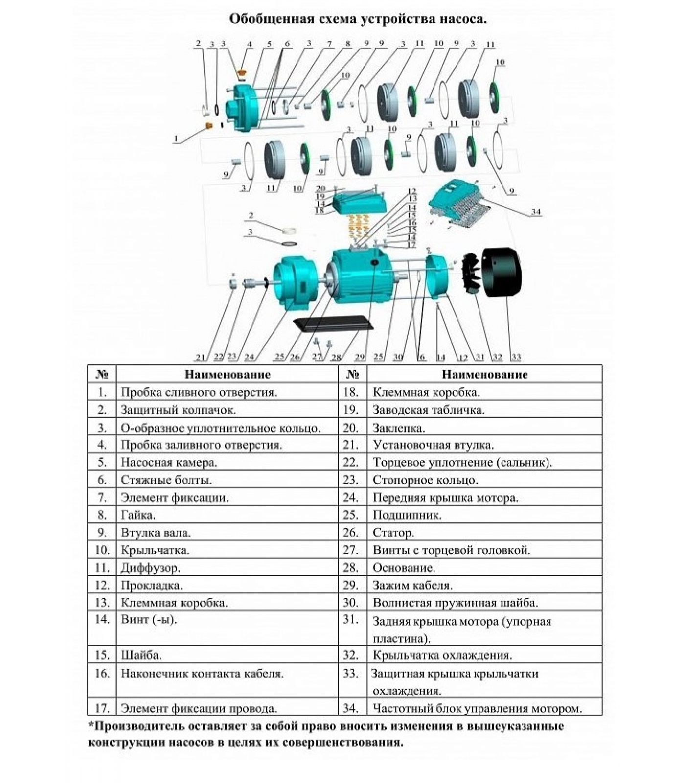 4. Крыльчатки, вал и насосная камера изготовлены из высококачественной нержавеющей стали марки AISI 304.