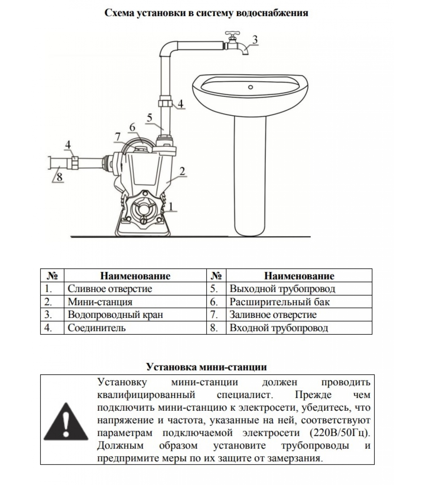 Данные мини-станции предназначены для перекачивания и увеличения давления чистой пресной воды или жидкостей, схожих с ней по физическим и химическим свойствам. Они используются в системах подачи воды в здания, промышленные объекты, вспомогательное оборудование, теплицы, сады, огороды, животноводческие и птицеводческие хозяйства, кондиционирования, опрыскивания, а также в трубопроводах с недостаточным или нестабильным давлением и т. д. Данные мини-станции не предназначены для питьевого водоснабжения, перекачивания агрессивных и абразивных веществ, соленой воды, а также легковоспламеняющихся, взрывоопасных и газированных жидкостей! Все мини-станции являются самовсасывающими и не требуют предварительного заполнения насосной камеры водой, за исключением первого пуска.