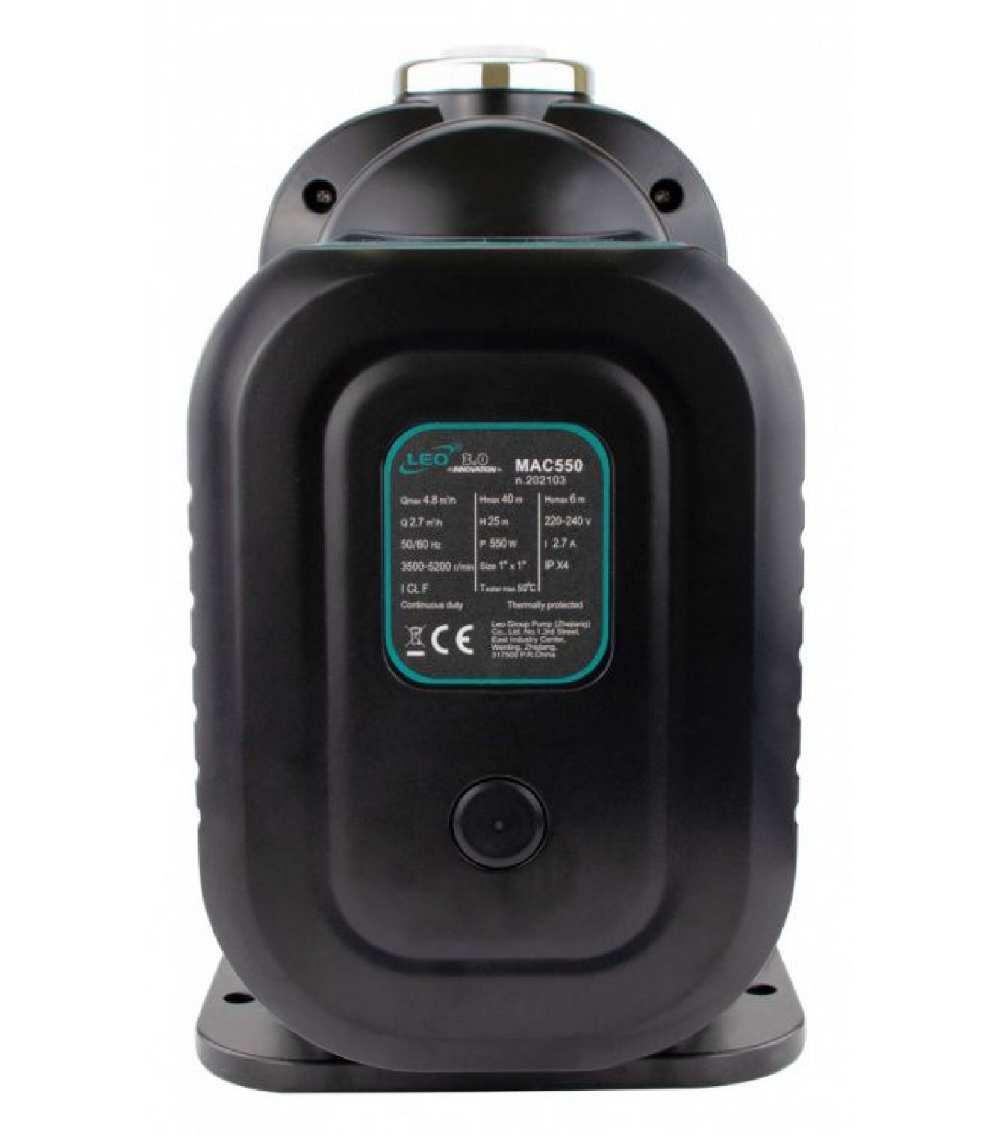 Инверторная насосная мини стация "LEO" MAC550 с мотором на постоянных магнитах предназначена для перекачивания пресной чистой воды и других жидкостей с аналогичными физическими и химическими свойствами, без содержания твердых частиц и волокнистых включений. Они используются в садовой и сельскохозяйственной ирригации, животноводстве, птицеводстве, для перекачивания жидкости из колодцев, резервуаров, а также в системах: охлаждения, увеличения давления, вентиляции, кондиционирования и т. д. Эти мини-станции не предназначены для питьевого водоснабжения, перекачивания агрессивных и абразивных веществ, соленой воды, а также легковоспламеняющихся и взрывоопасных жидкостей!