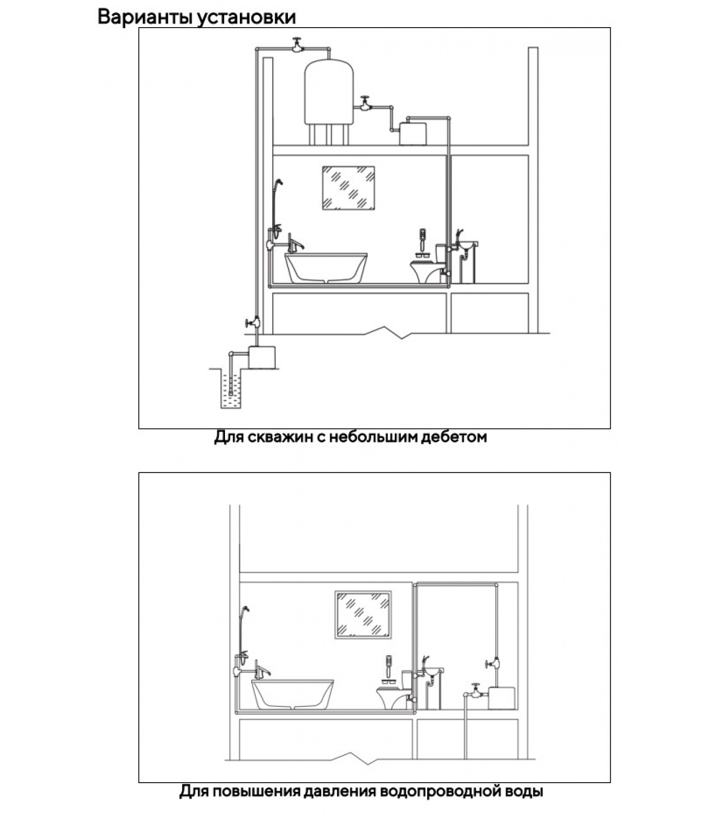 Насосная станция E8 tempo DAM/600X Модель подходит для работы со скважинами и колодцами с небольшим дебетом, а также для повышения давления воды в водопроводе. Максимальный напор составляет до 50 метров, производительность — до 6,5 м³/ч, что позволяет использовать насосную станцию для нескольких точек водоразбора одновременно. Глубина всасывания до 7 метров делает насос удобным решением для автономного водоснабжения.
