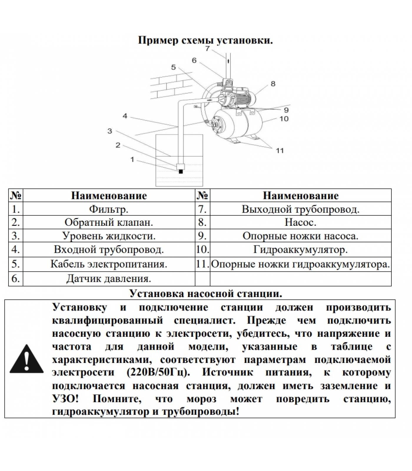Данная насосная станция используется для перекачивания чистой воды или других жидкостей с такими же физическими и химическими свойствами.