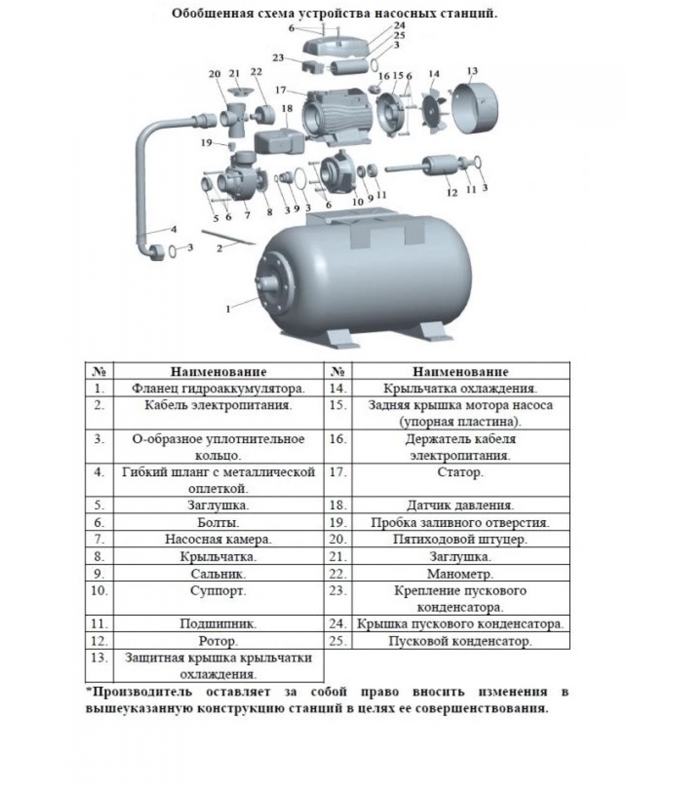 Данная насосная станция является самовсасывающей и не требует предварительного заполнения рабочей камеры водой, за исключением первого пуска.