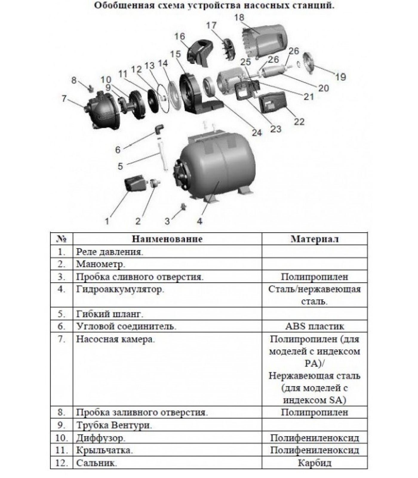 Насосная станция укомплектована удлиненным эжектором для всасывания воды и реле 2 в 1. Действует как реле давления и реле сухого хода