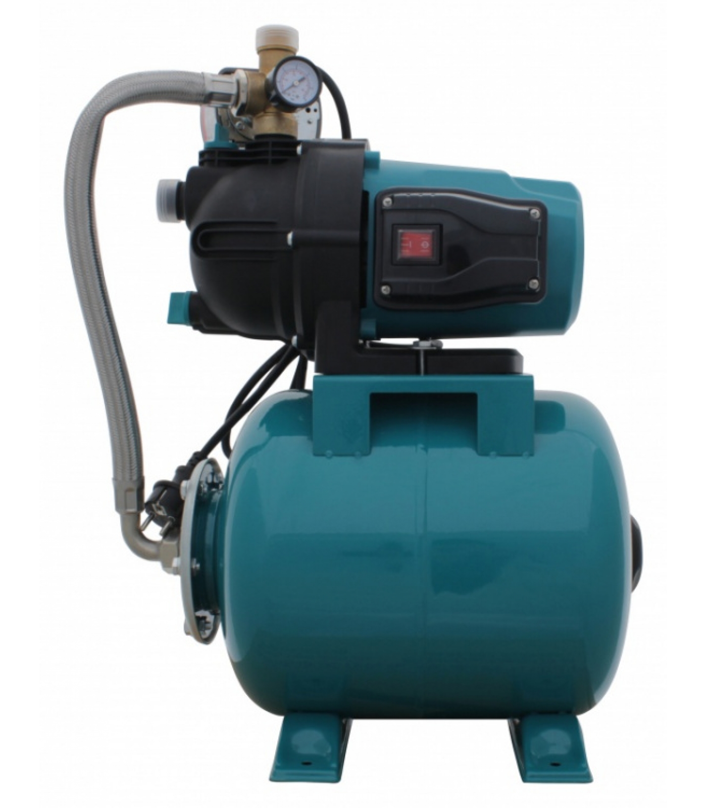 Насосная станция укомплектована удлиненным эжектором для всасывания воды и реле 2 в 1. Действует как реле давления и реле сухого хода.