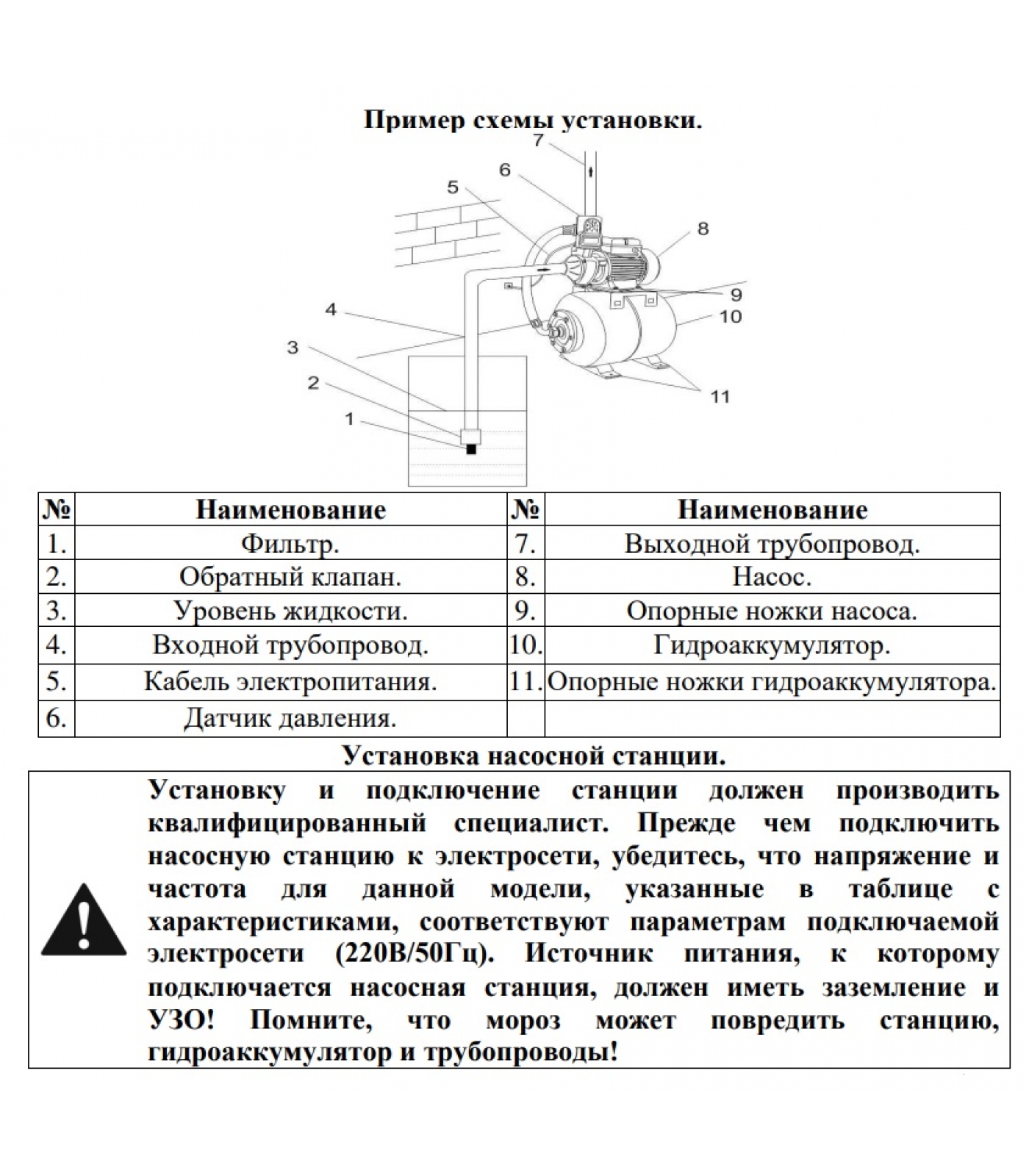 Данная насосная станция используется для перекачивания чистой воды или других жидкостей с такими же физическими и химическими свойствами.