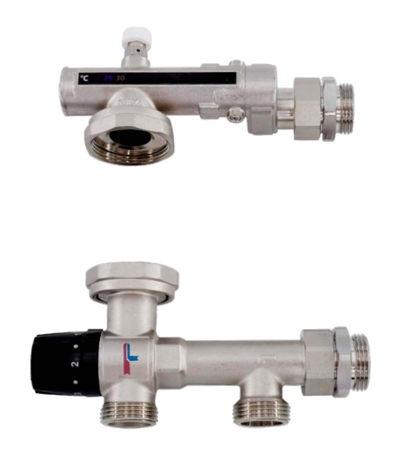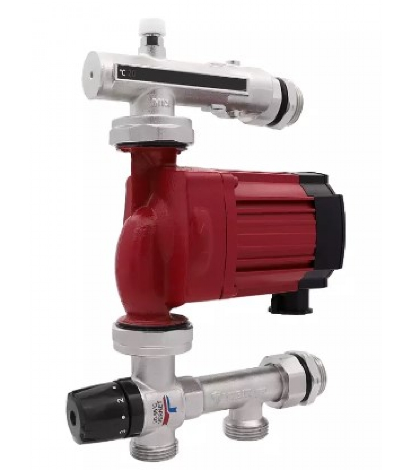 Смесительный узел c предназначен для регулирования и автоматического поддержания заданной температуры теплоносителя в системах водяного теплого пола. Данный узел скомплектован на основе 3-х ходового термосмесительного клапана. Термостат отвечающий за температуру смешанного теплоносителя находится непосредственно внутри клапана и полностью омывается теплоносителем без промежуточной гильзы, это максимально сокращает время реакции на изменение температуры и прибор работает максимально точно.