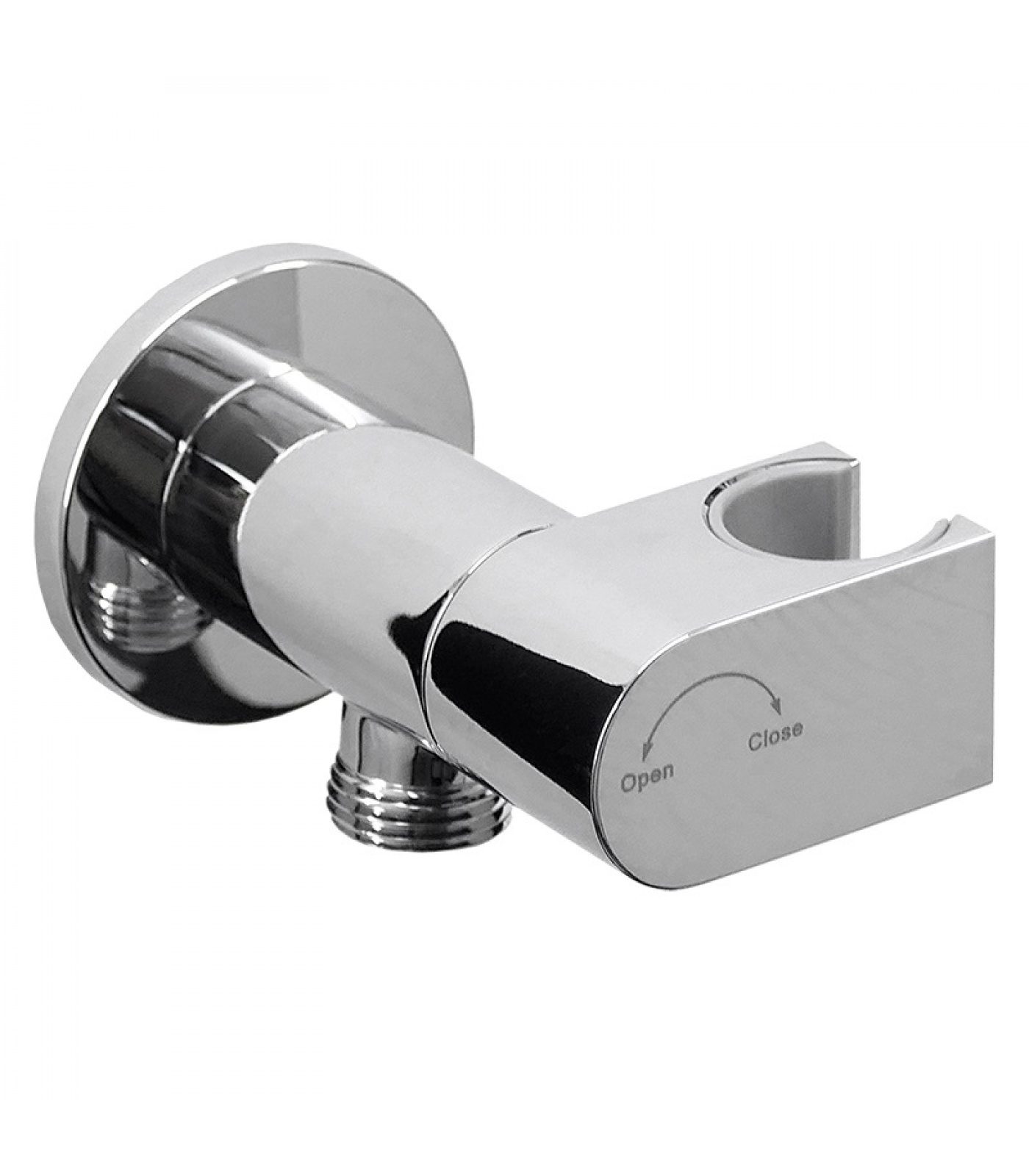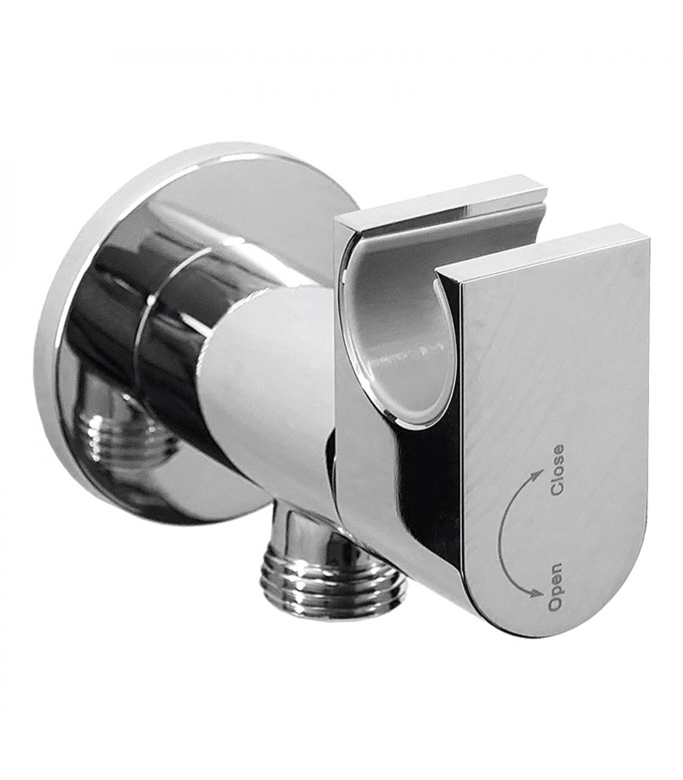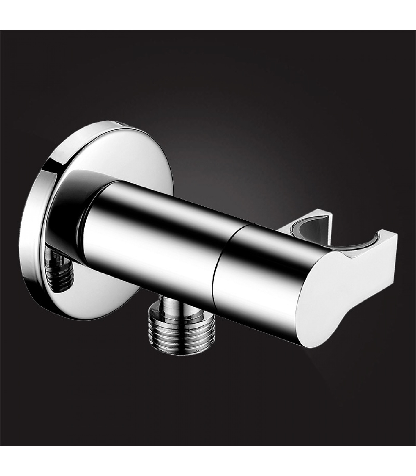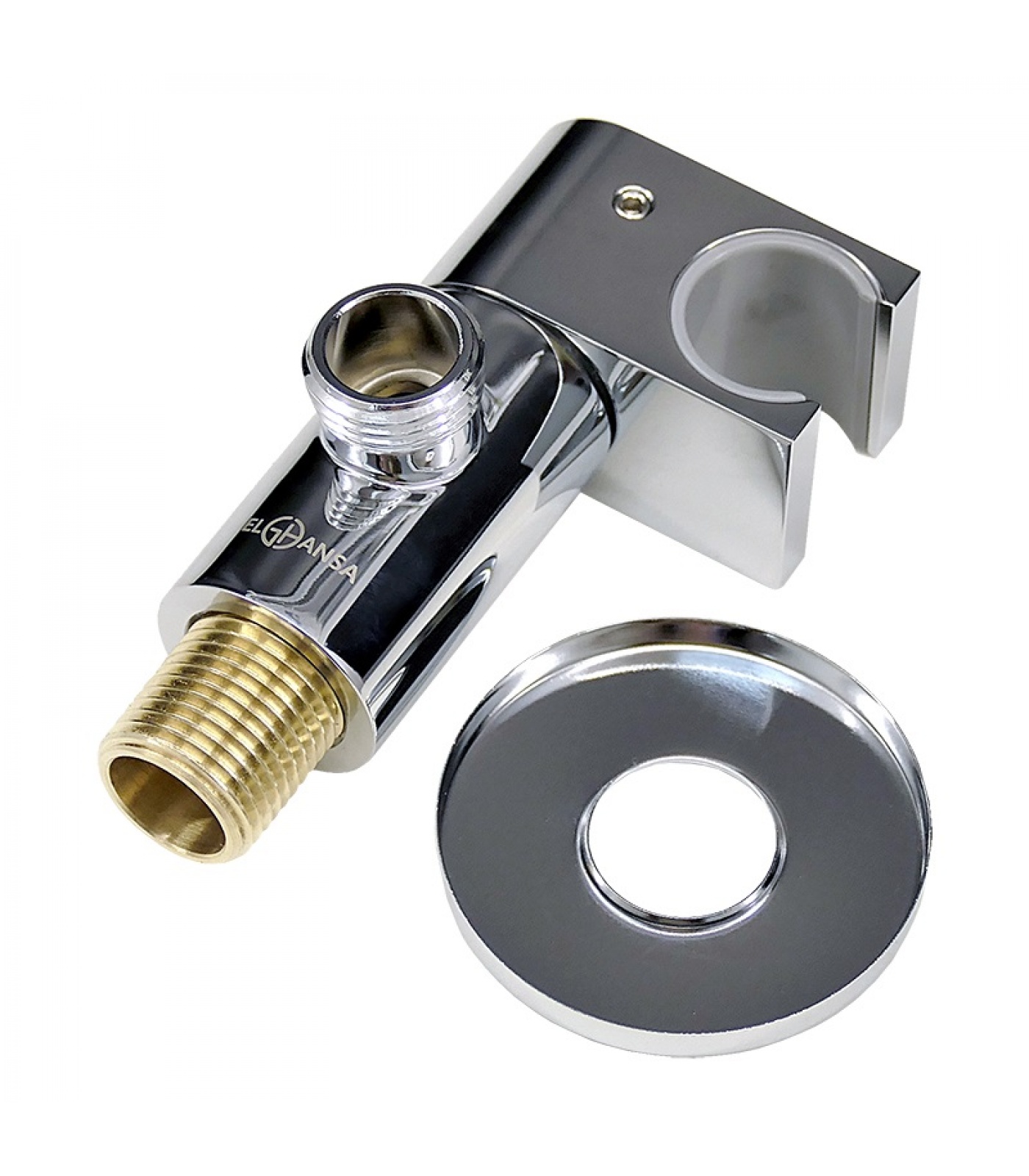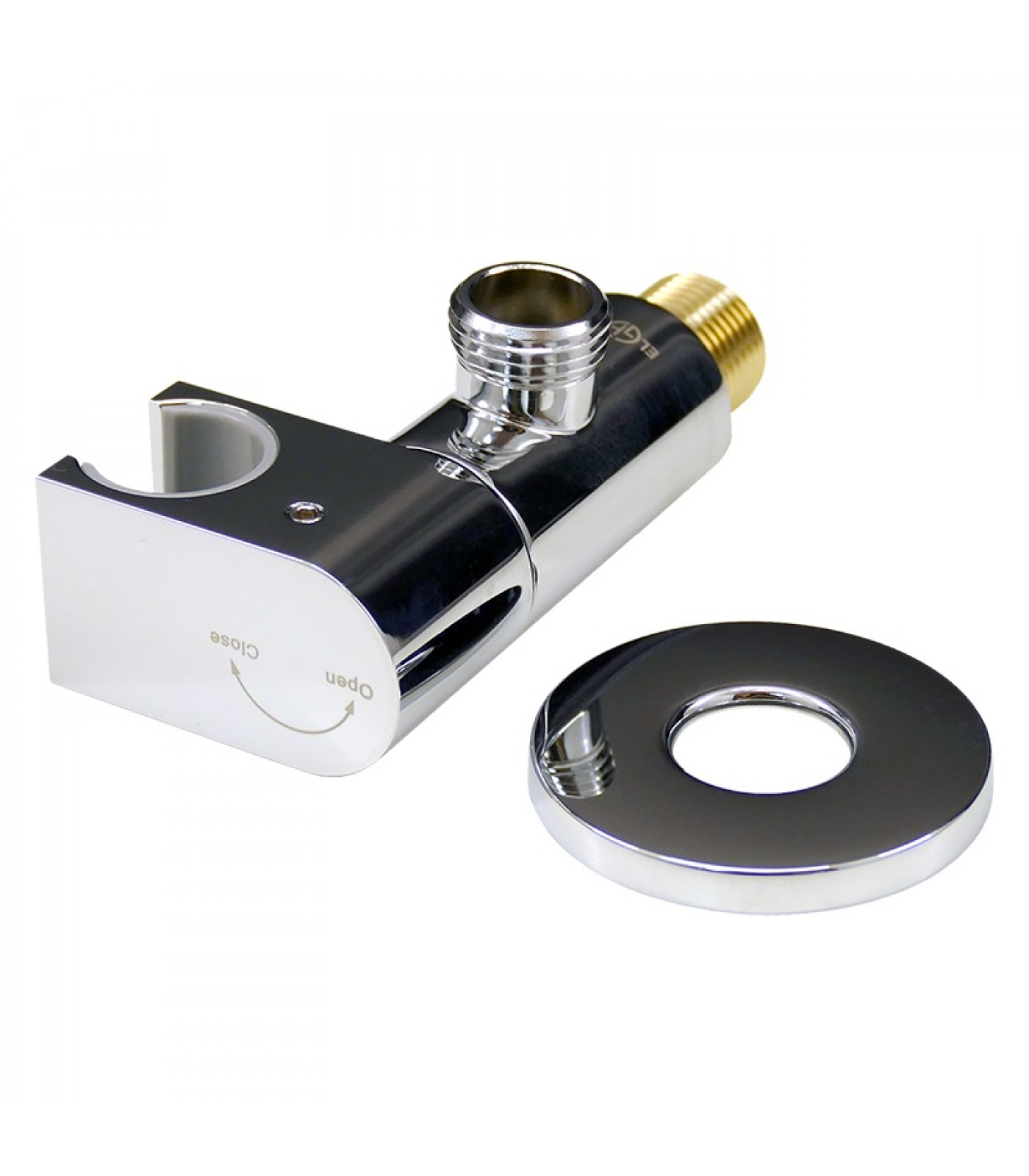 Подключение для душевого шланга из латуни Elghansa WS-19К, с боковым держателем лейки, 86 мм, хром глянец/выход на шланг с держателем для лейки в ванну (душевую кабину).