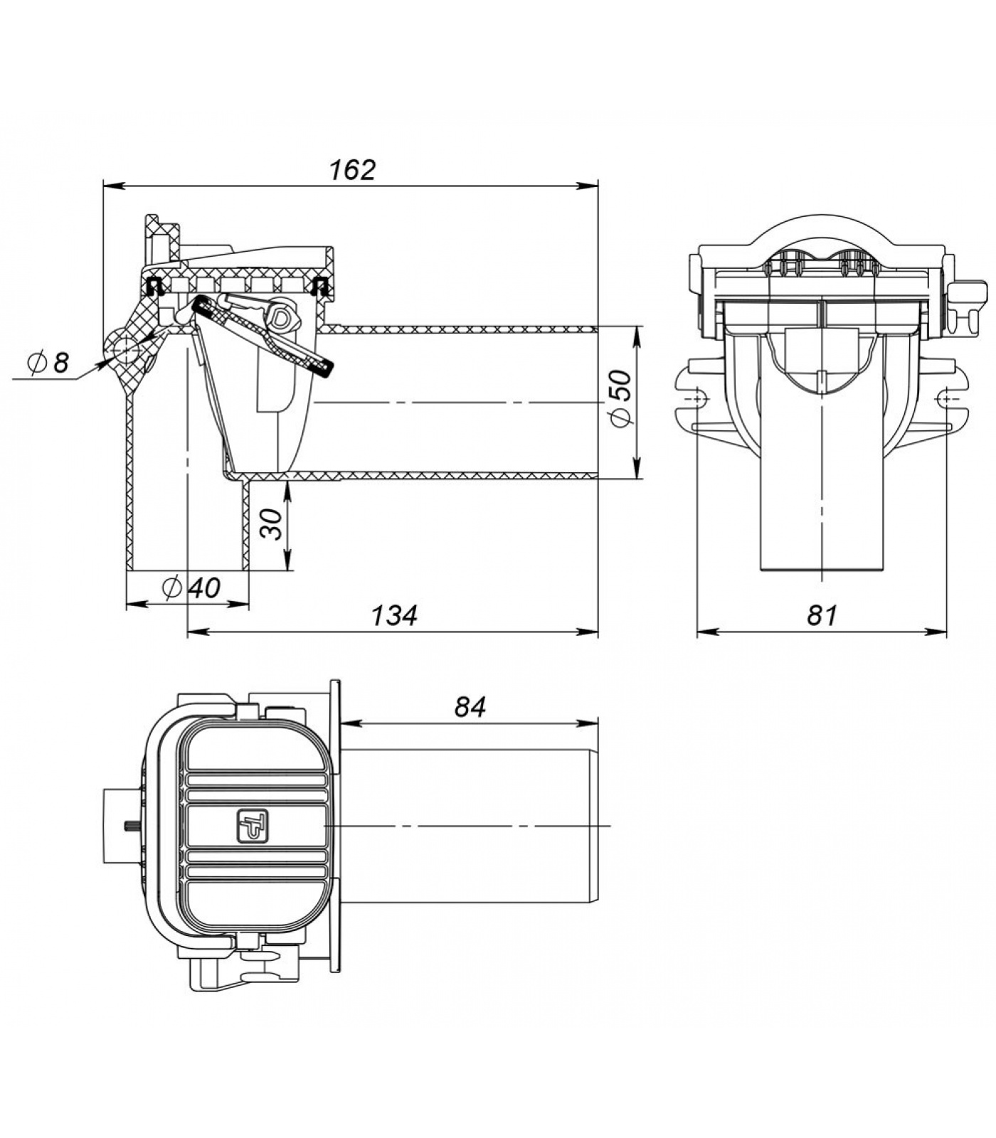 Обратный клапан (канализационный затвор) ТП-86.50.С устанавливается перед сантехническим прибором или перед группой приборов внутри помещения и предназначен для внутренних бесфекальных сточных вод.