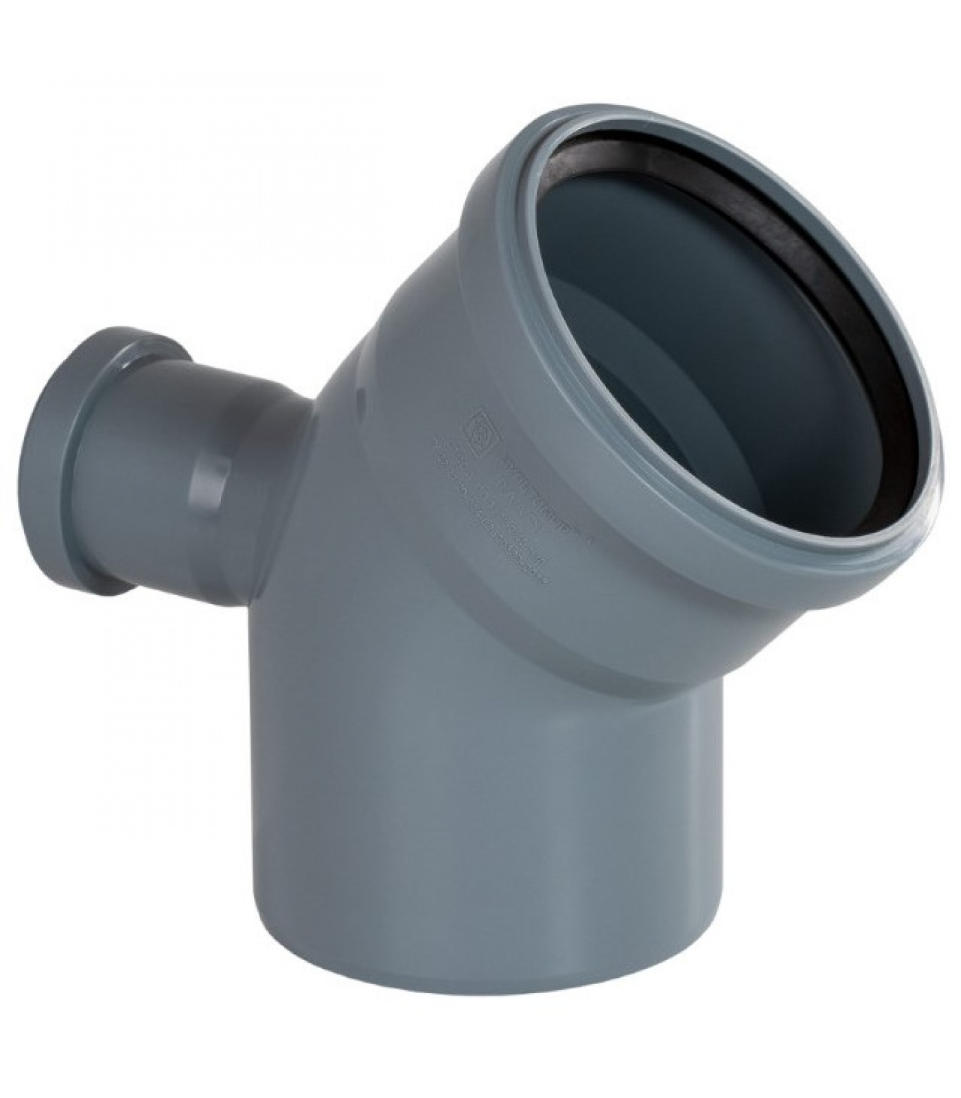 Отвод канализационный 45 градусов с патрубком тыл. Магистраль диаметром 110 мм и патрубок диаметром 50 мм.