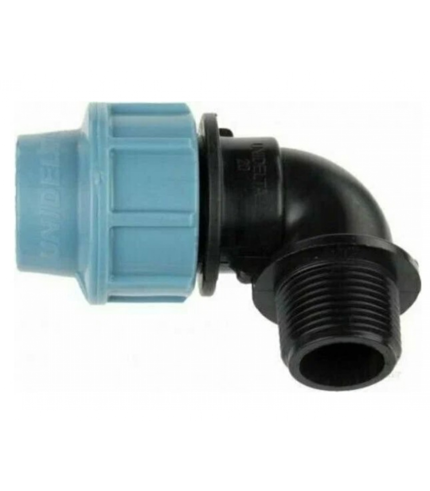 Отвод Unidelta 90° компрессионный 25 мм х 1"резьба наружная, предназначен для обеспечения легкого легкого перехода под прямым углом с трубопровода из ПНД труб на стальной трубопровод.