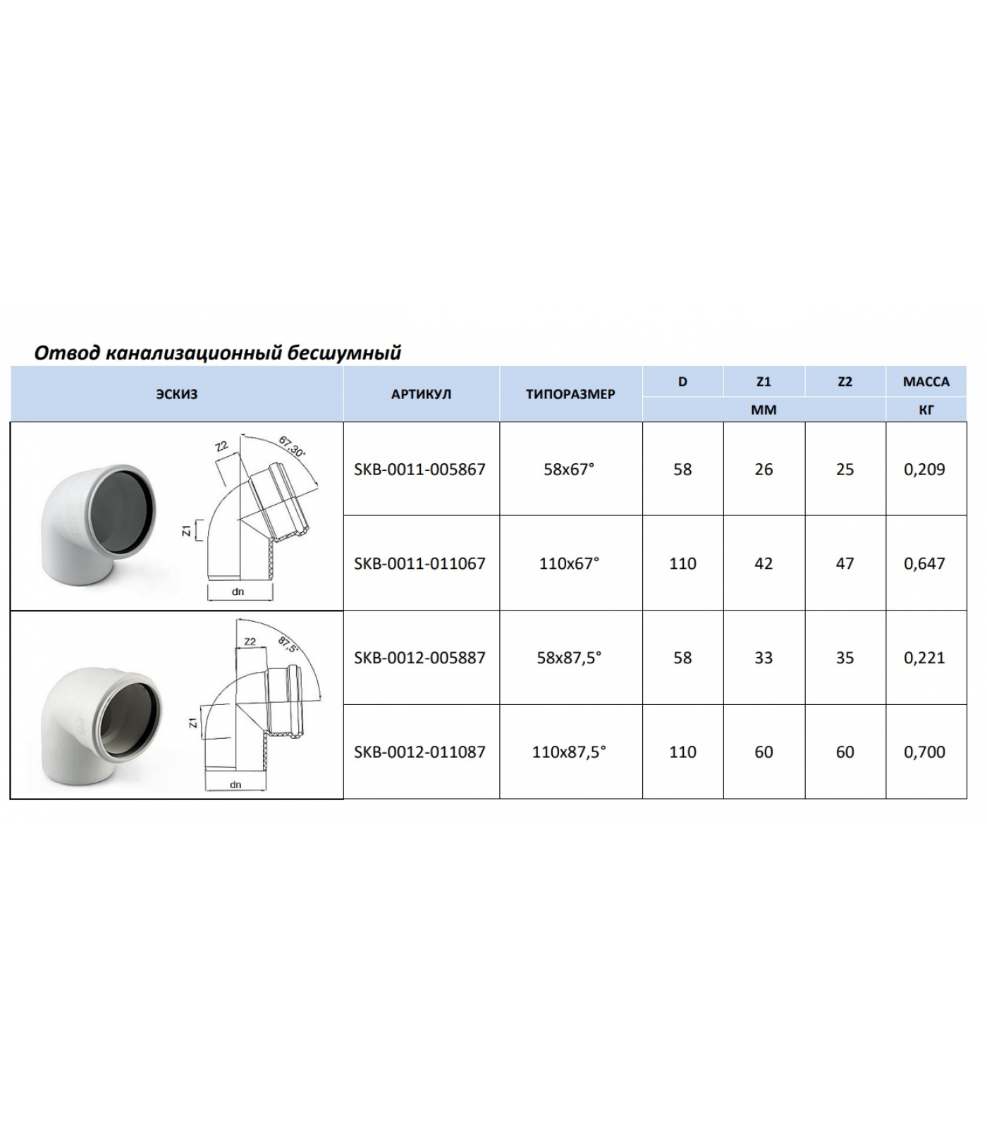 Отвод канализационный бесшумный STOUT D 58 х 87,5°