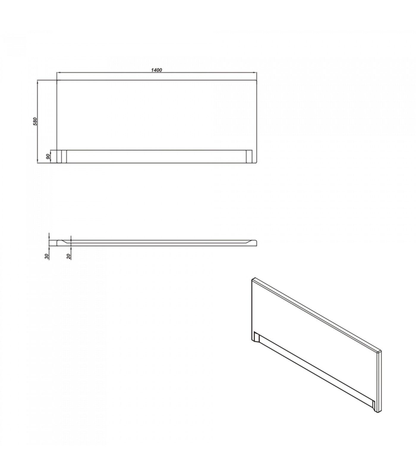Панель для ванны фронтальная универсальная тип 1, 140, ультра белый (PA-TYPE1*140-W)