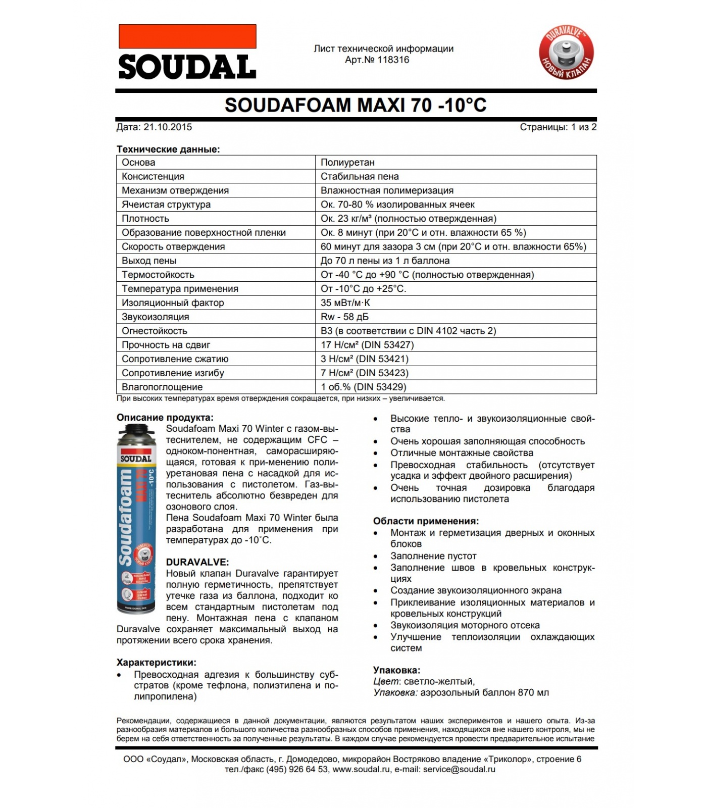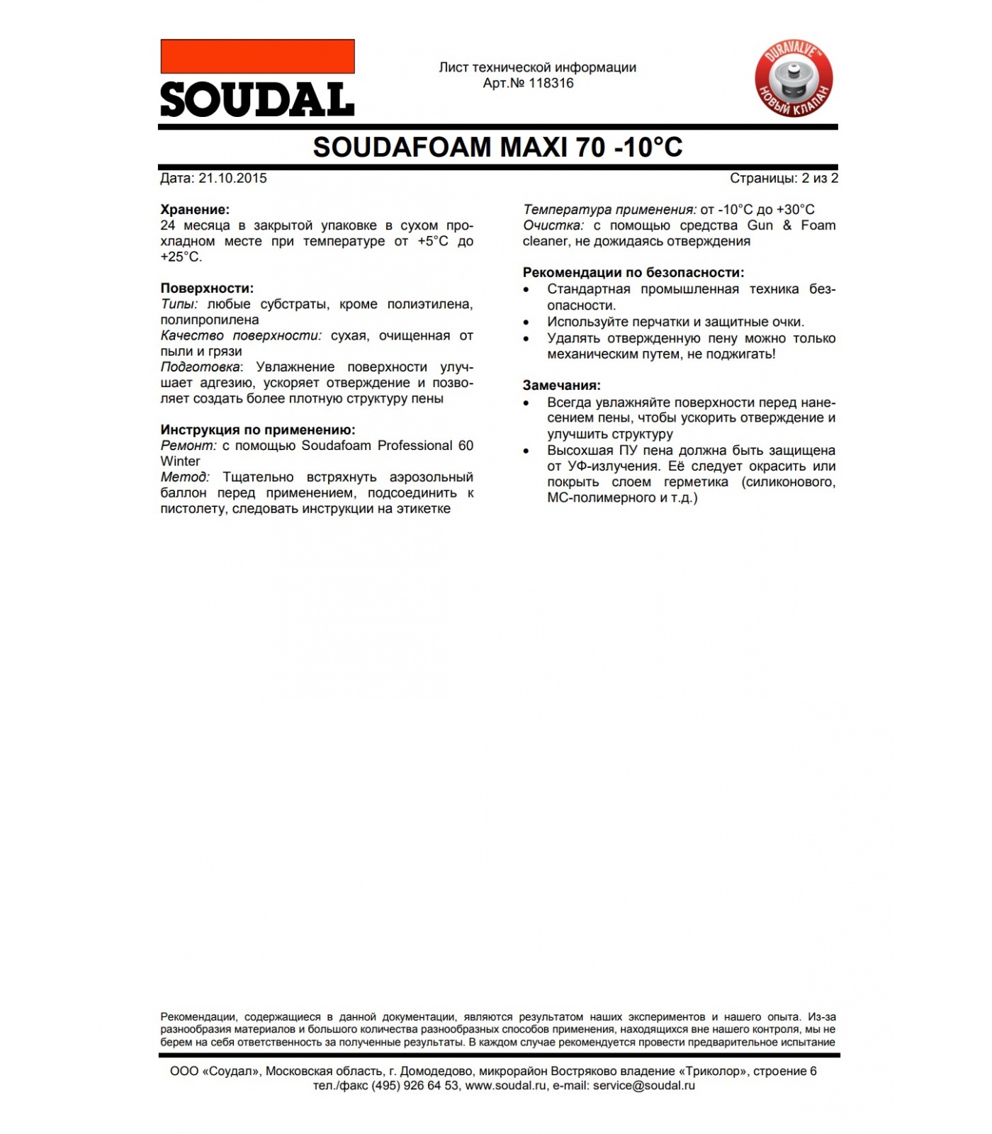 Пена монтажная профессиональная Soudal Soudafoam Maxi 70 Winter, зимняя