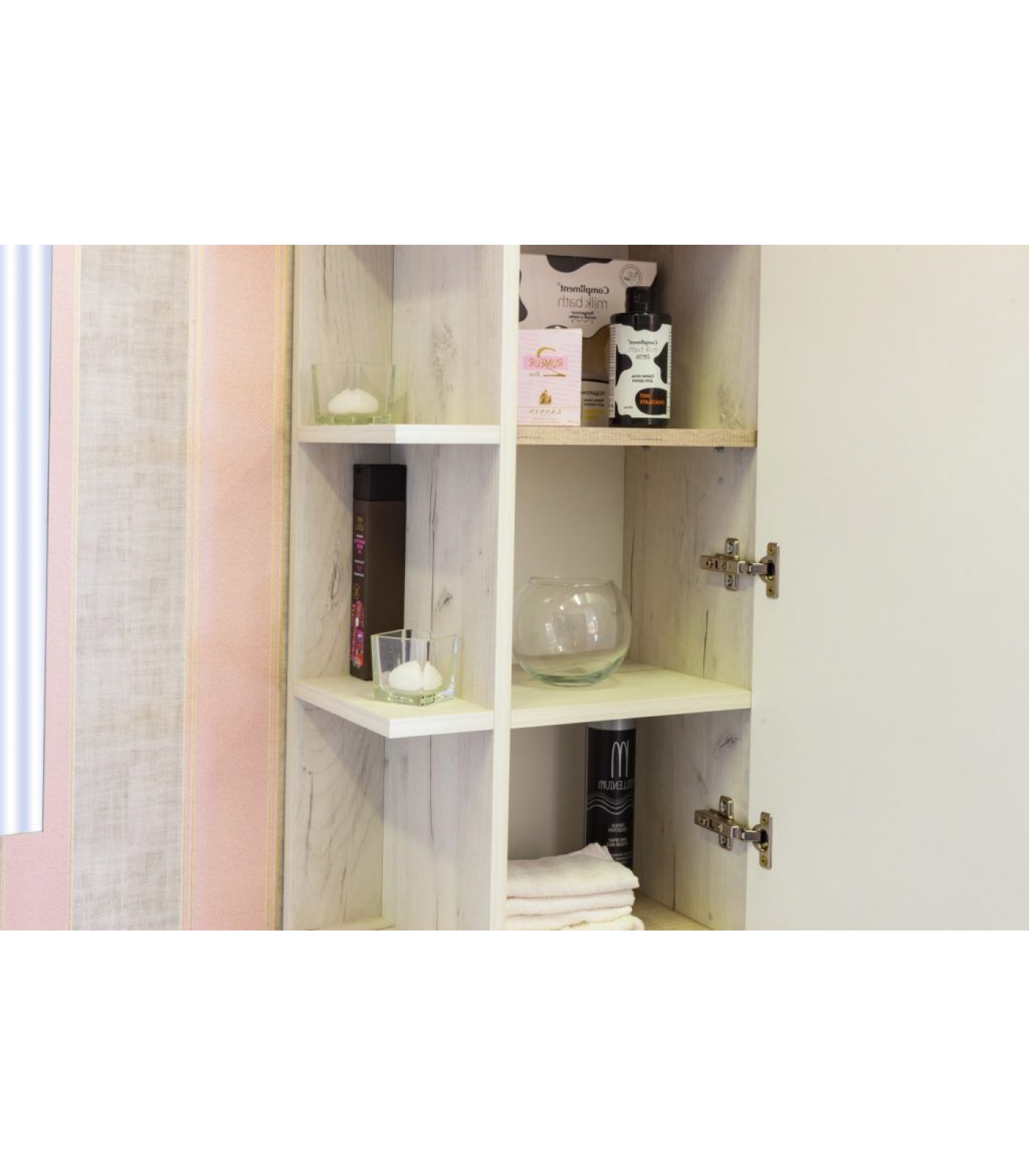 Шкаф-пенал является частью гарнитура для ванной комнаты Чикаго.
