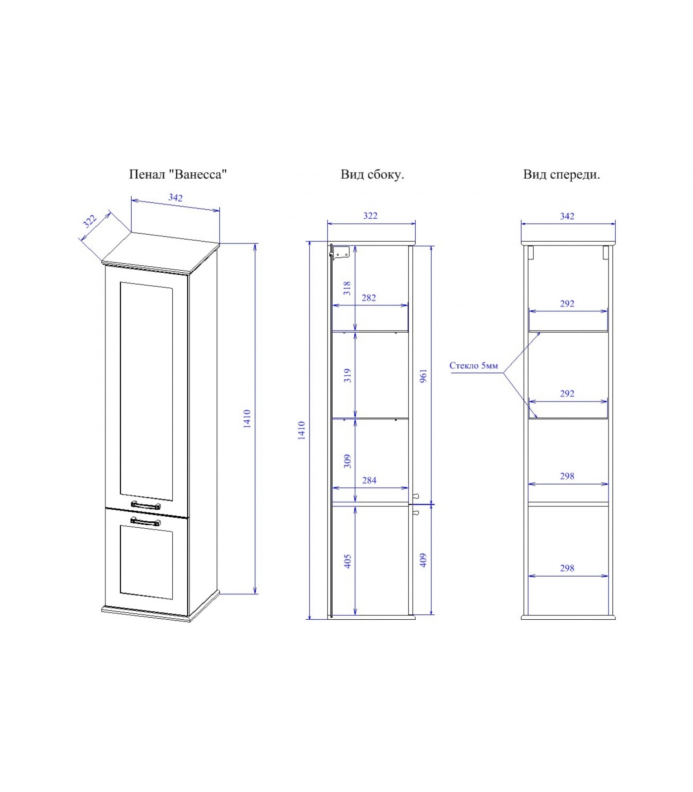 В производстве используют только качественные влагостойкие материалы (ДСП), в составе которых полностью отсутствуют опасные вещества. Серия Ванесса отличается превосходным дизайном с соблюдением всех основных элементов стиля ретро. Основным цветом, в котором выполнен шкаф-пенал Sanflor Ванесса является белый, гармонирующий с большинством интерьерных решений. Шкаф-пенал предусматривает удобную и вместительную систему хранения, состоящую из дверей.