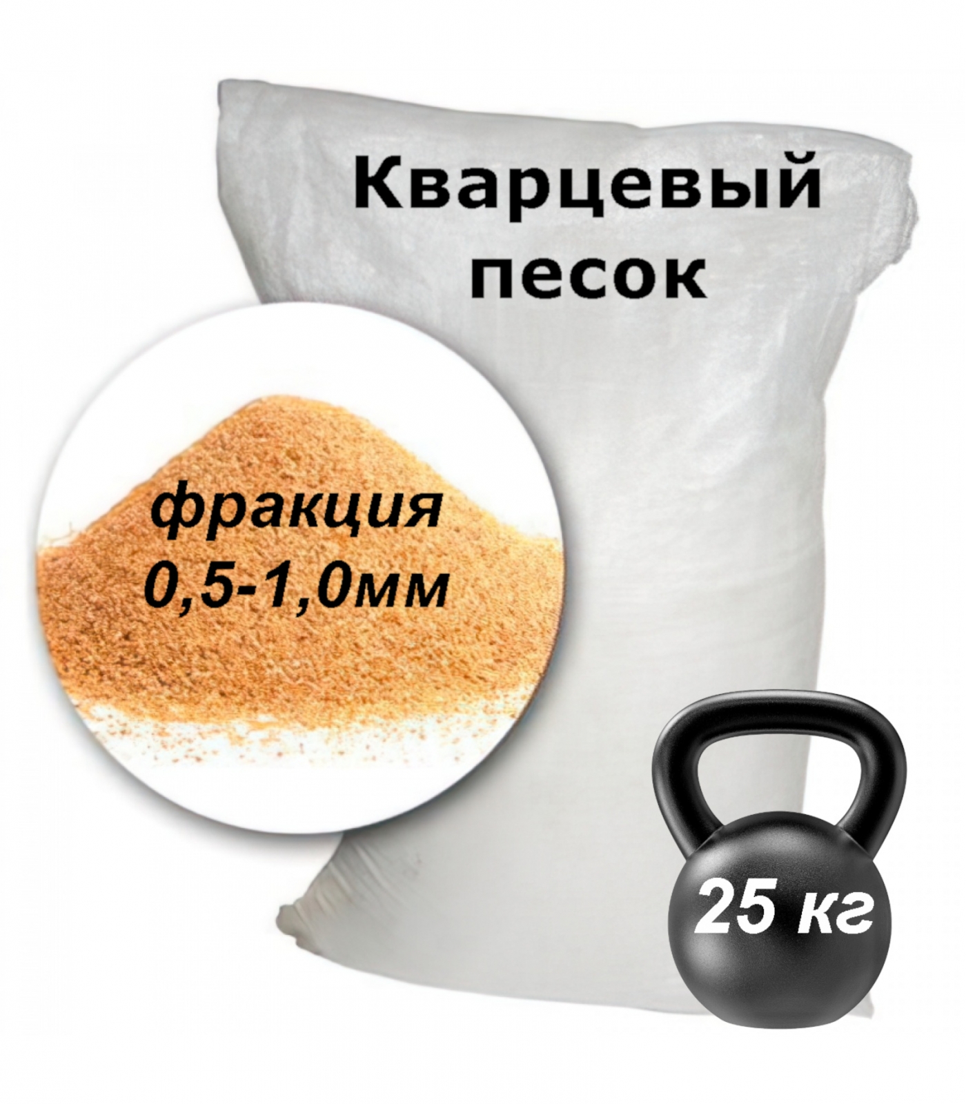 Песок кварцевый для песочного фильтра, фракция 0,5-1,0мм, 25 кг